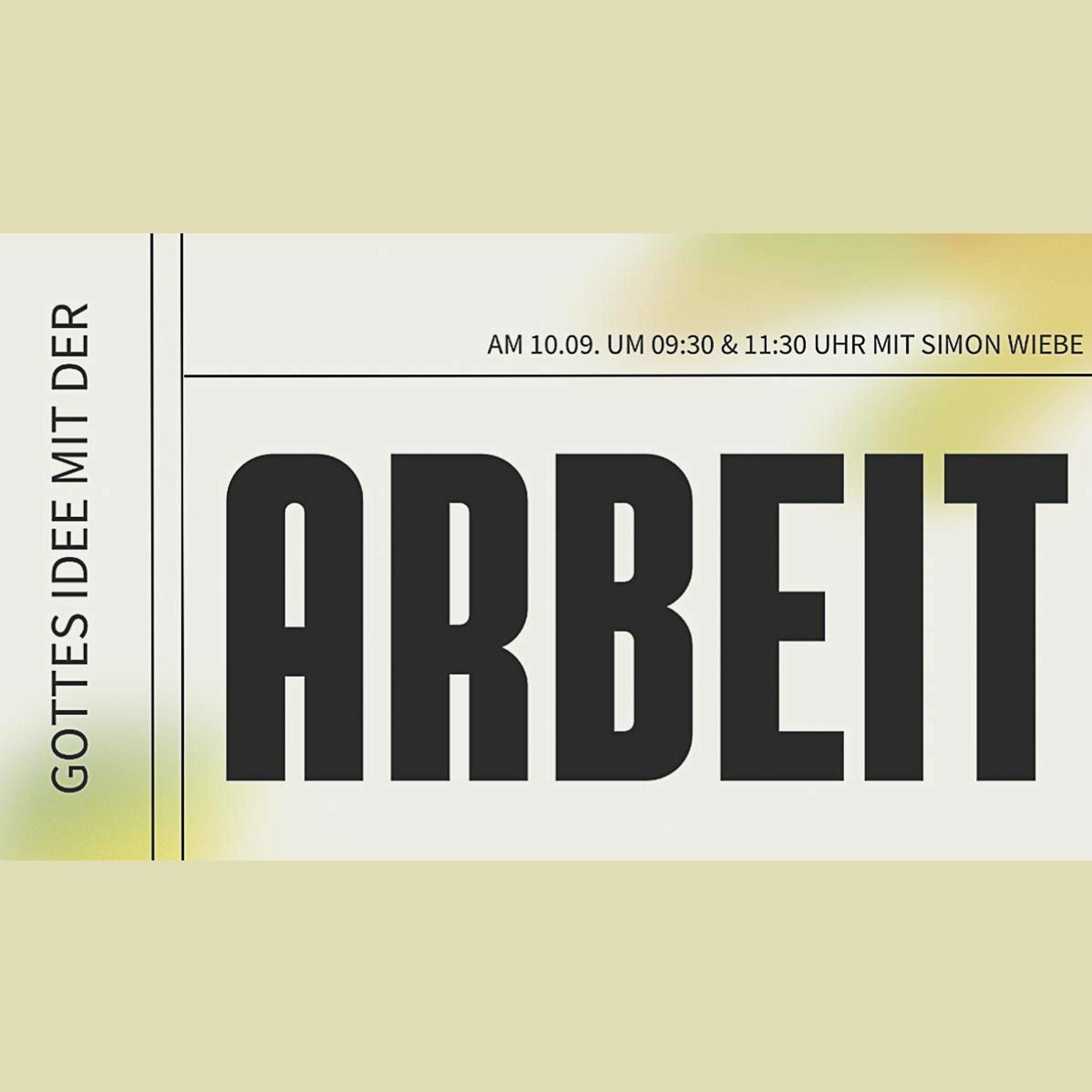 Unsere dritte Predigtthemenreihe in diesem Jahr. Den Anfang macht Simon Wiebe mit dem Thema "Gottes Idee mit der Arbeit". Wir laden dich ein, vor Ort dabei zu sein.