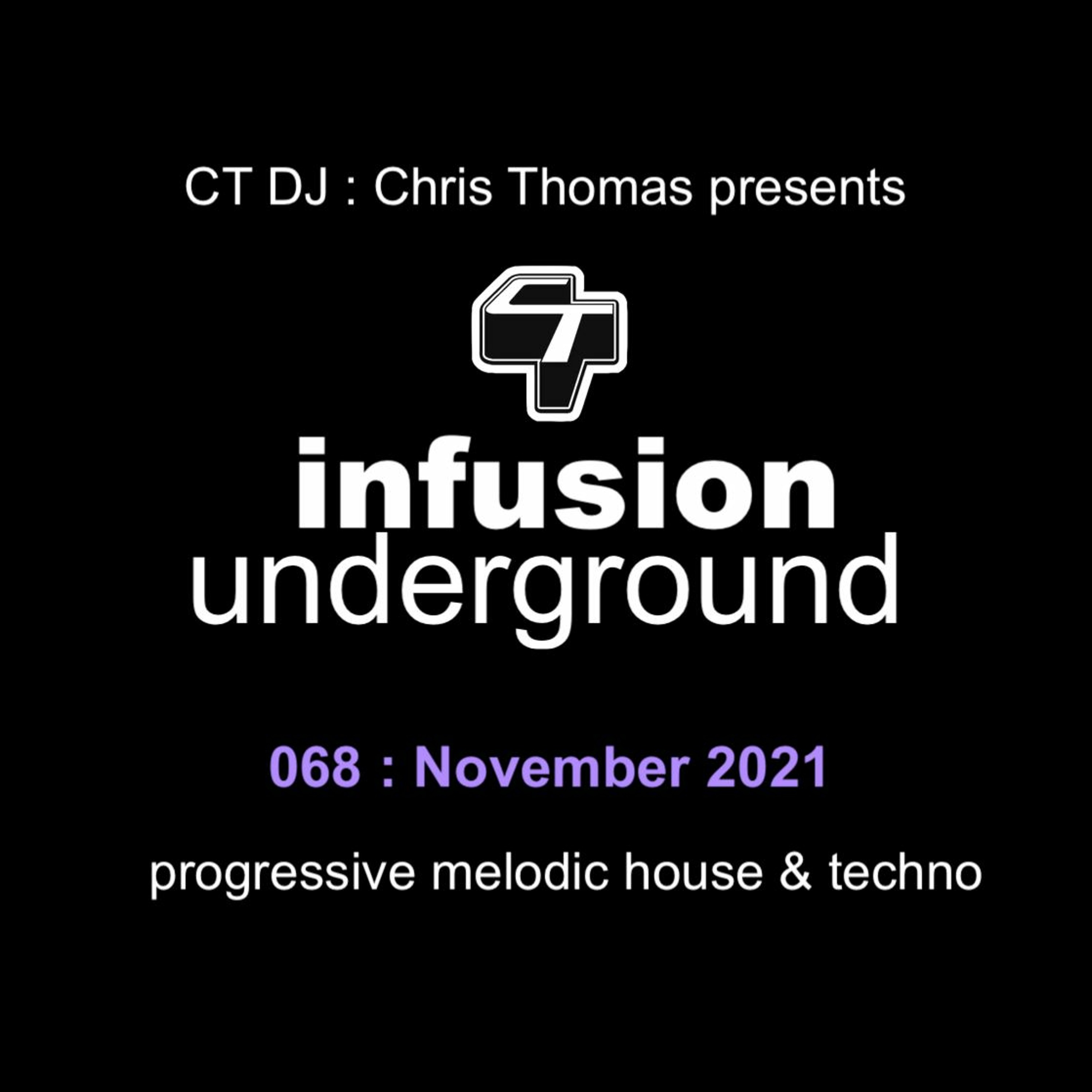 This months episode is a live studio mix by CT for Infusion Underground podcast. This ended up as 18 new and old tracks selected and mixed live by CT. Runs for 1 hour 30 mins featuring tracks from Sentre, Daniel Avery, Richie Blacker, Frankie Rizardo, Sven Vath, Bicep, Marsh, Durante, Sasha, Ela Minus and ends with a classic from 1995 from Fluke.