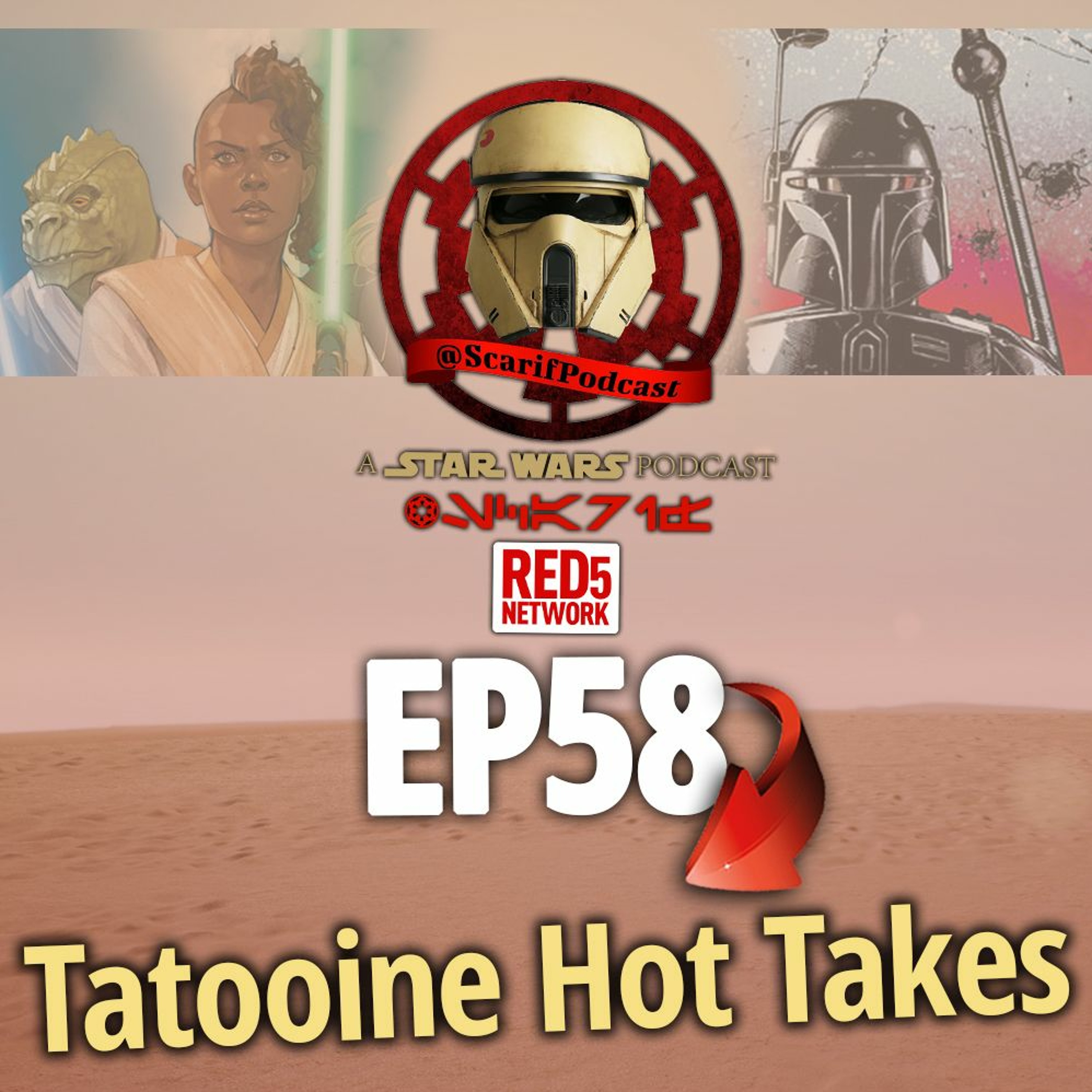 Big thanks for the overwhelming love of #TatooineHotTakes. EP58 is a doozie and we continue hammering out the list from the previous show from suggestions by our listeners. Retconning the sequel trilogy? Jedi mental gymnastics? Missing Sith? High Republic imbalance? and a whole lot of shout outs to you, EP58 has got it all. But wait, there's more! Listen to details on how you can win some #ScarifSwag