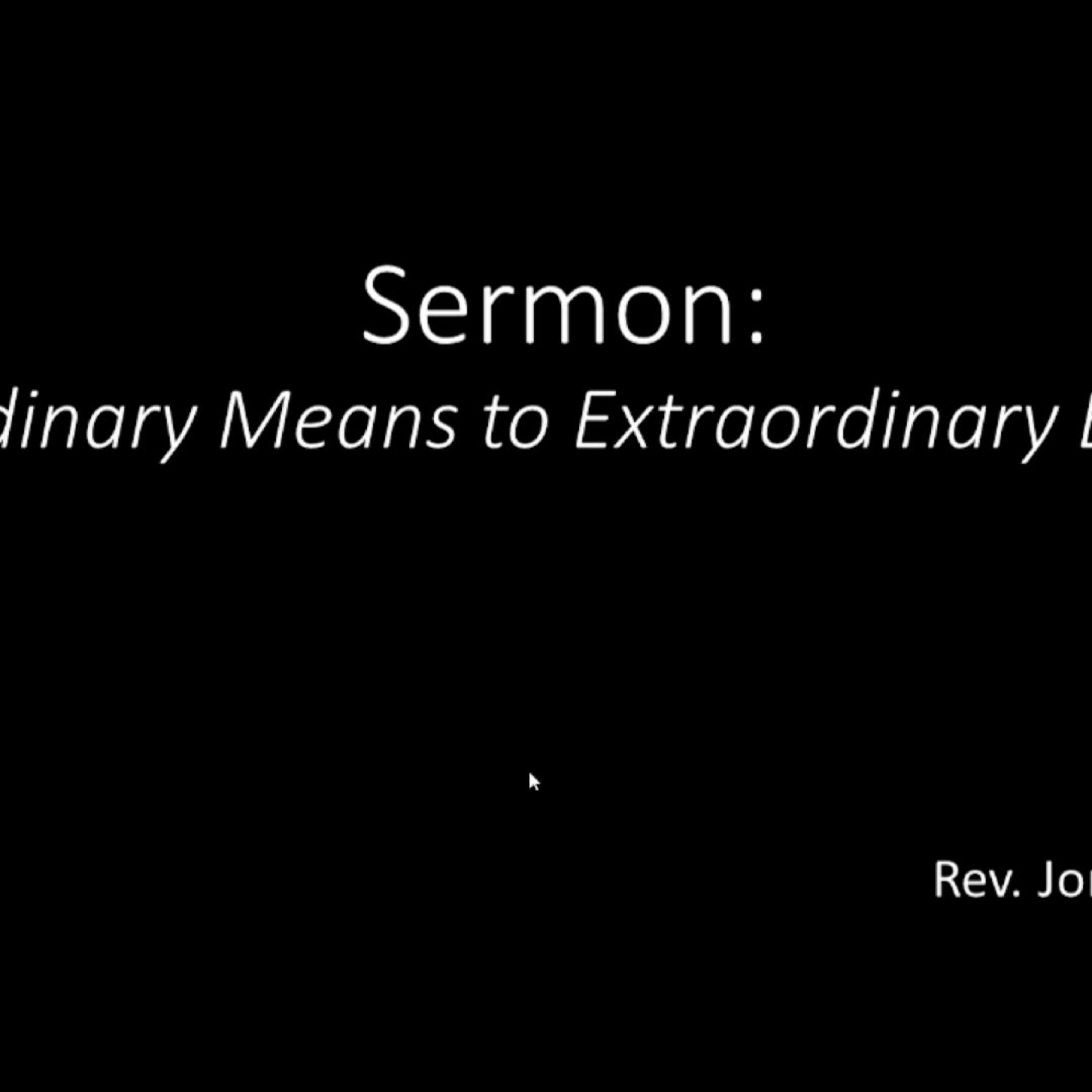 "Ordinary Means to Extraordinary Ends" by Pastor Jonathan Mann April 30, 2023 Pastoral Message Groveport UMC, Groveport Ohio