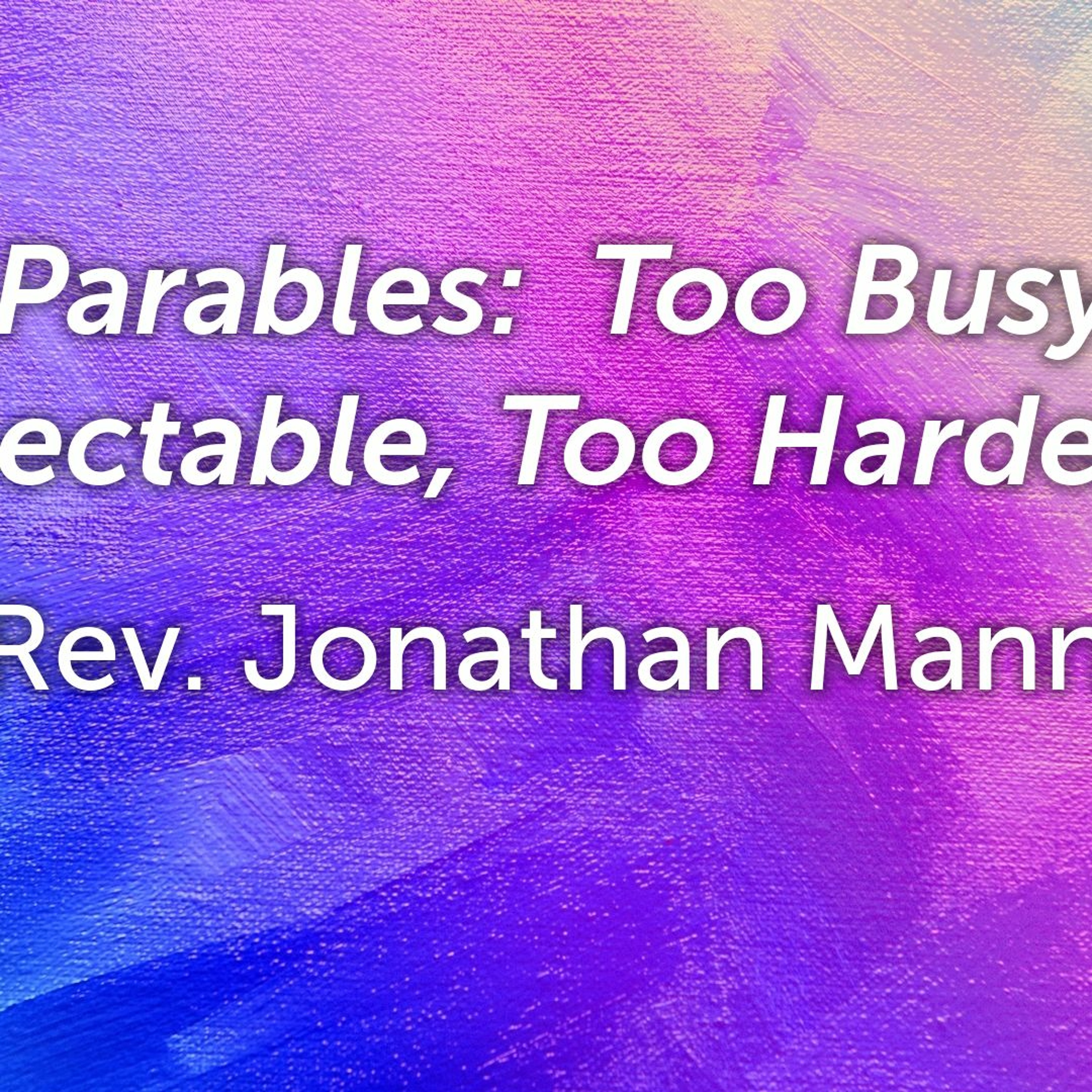 "The Parables: Too Busy, Too Respectable, Too Hardened" Pastor Jonathan Mann June 12, 2022 Pastoral Message