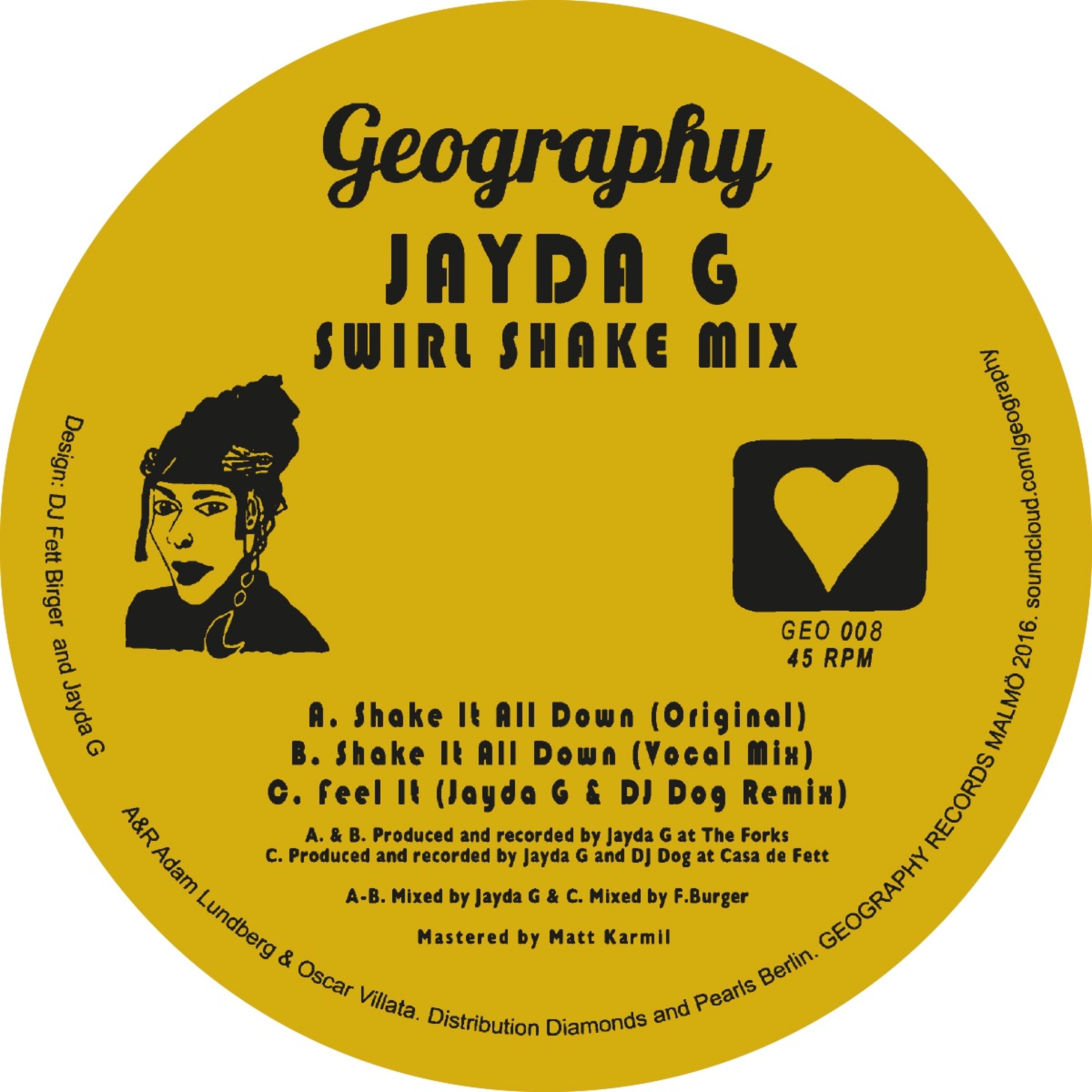 Geography 008 presents Jayda G on a tripp! One original, one vocal version, one DJ Dog Remix! Strictly for everyone.