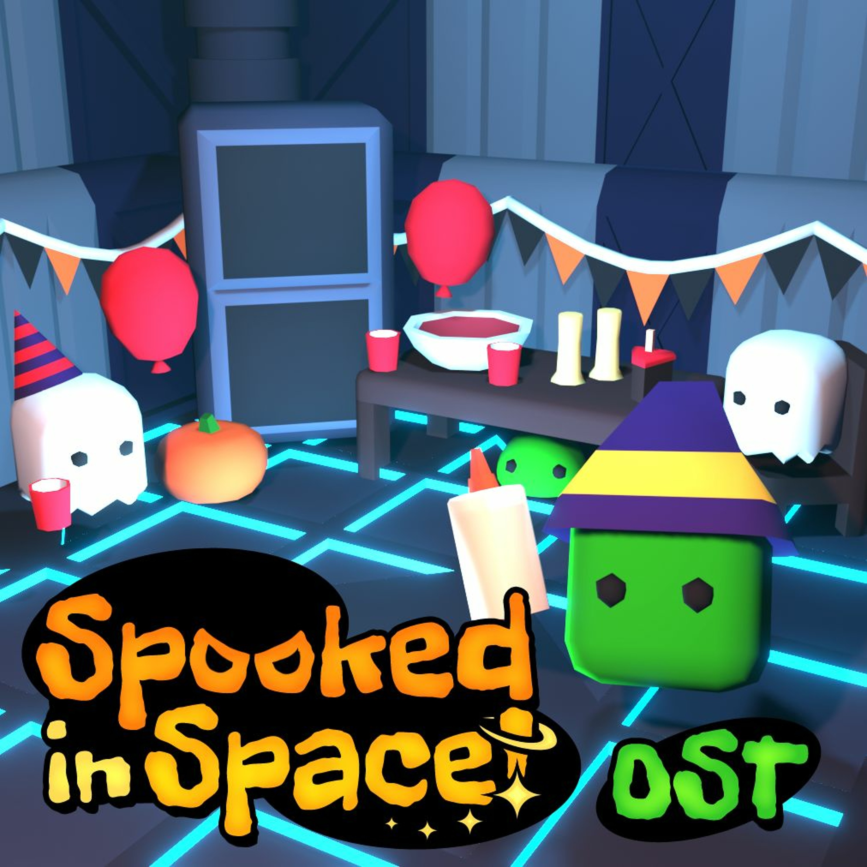 In the game Spooked in Space!, you have to get to a Halloween party in outer space to join together with all your friends. To do this, you can use control panels in the space station that allow you to control inanimate objects such as pumpkins, weird slimes and glue. The music ingame is dynamic and various tracks fade in and out depending on which objects you're remote-controlling. I tried to represent this in this rendered track. Enjoy!