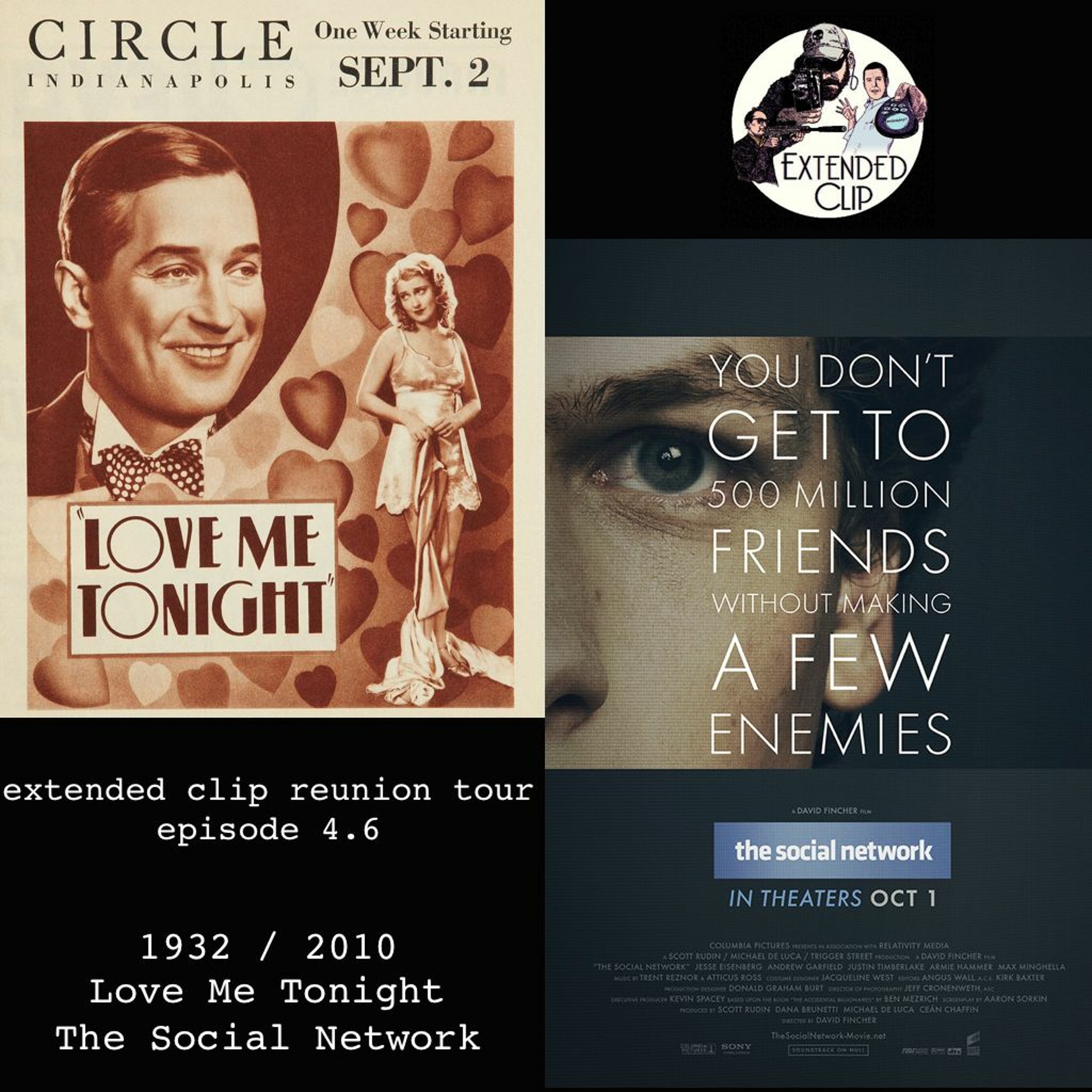 the reunion tour keeps on rolling on through time, as we enter the sound era in Timeline A and reverse the digital changeover in Timeline B. 1932's Love Me Tonight starring Maurice Chevalier is our first sound feature in Timeline A and we made it count with a swooning, clever, raunchy and swaggering musical comedy. Then, a hefty Malcolm in the Middle (29:44) includes discussion of Morocco, Monkey Business, Public Enemies, & The Curious Case of Benjamin Button. Finally, we talk about The Social Network (50:50). How did David Fincher make a freakin' movie about facebook?? The Zuck, The The Digital, The Montage, we hit it all. listen up.