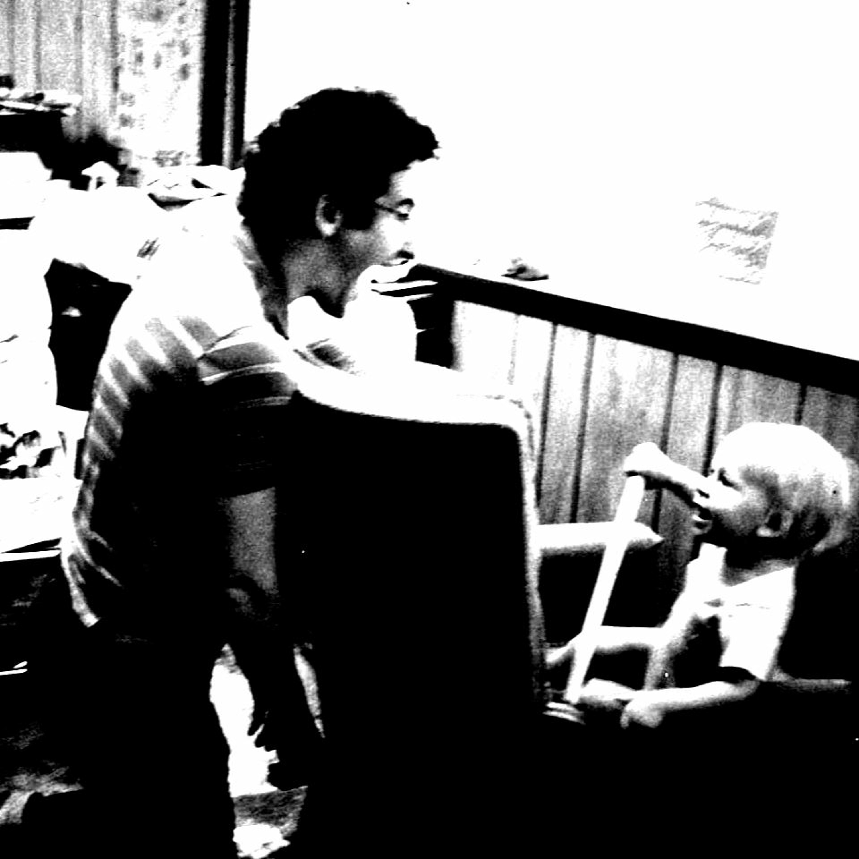 John E, Karen Eisenbrey, Keith Eisenbrey, Anna K, Aaron Keyt, Holden K, Neal Kosály-Meyer, Marilyn Meyer, and William Meyer, improvising and chatting at the Tintinabulary, Seattle, in July 1991