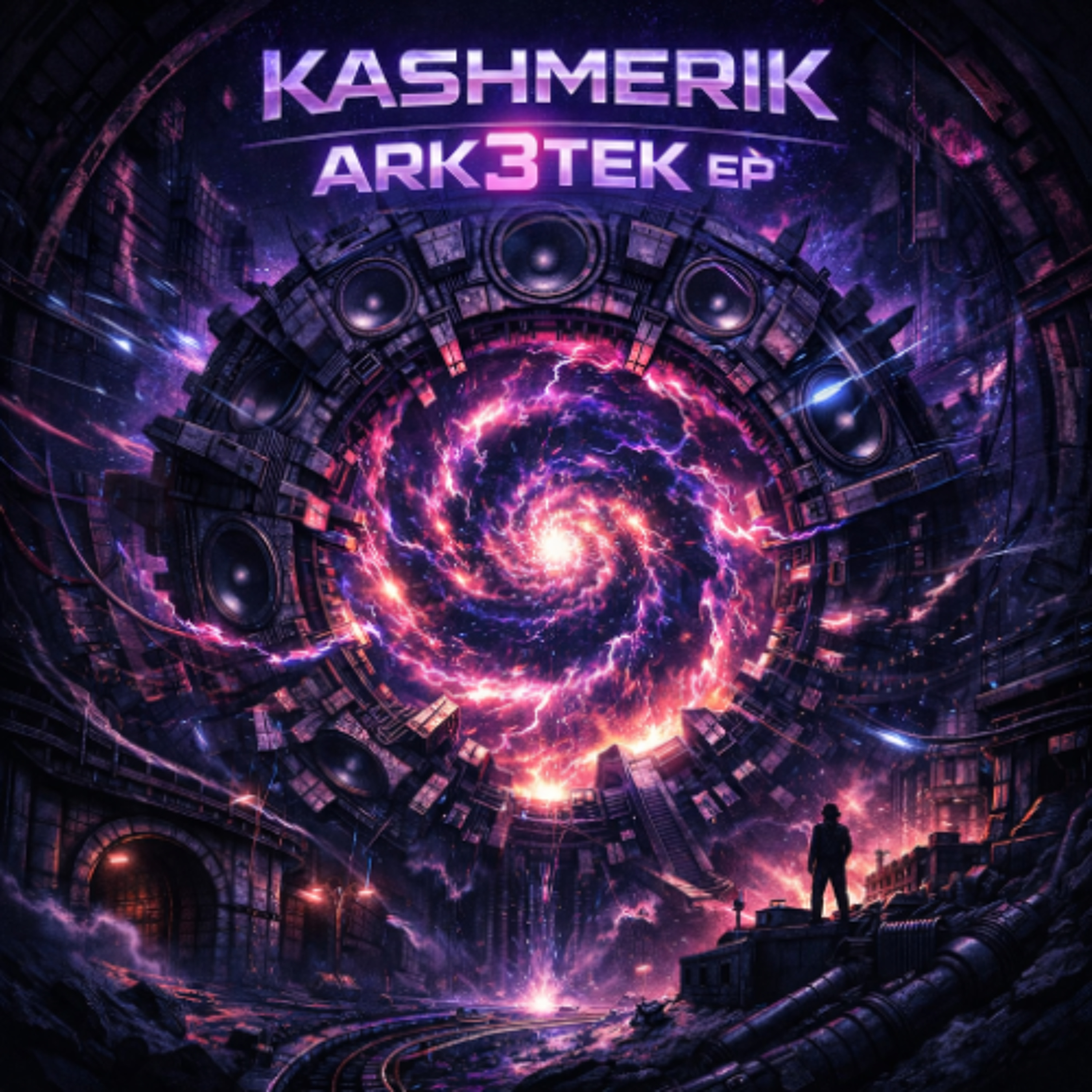 ARK3TEK EP is a five-track dive into subterranean bass architecture. Funk-laced samples collide with heavy neuro bass, bending space between groove and pressure. From the gravitational pull of Perpetual Flex to the dimensional drop of Portal Plunge, Kashmerik builds a world where underground funk meets interdimensional low-end.