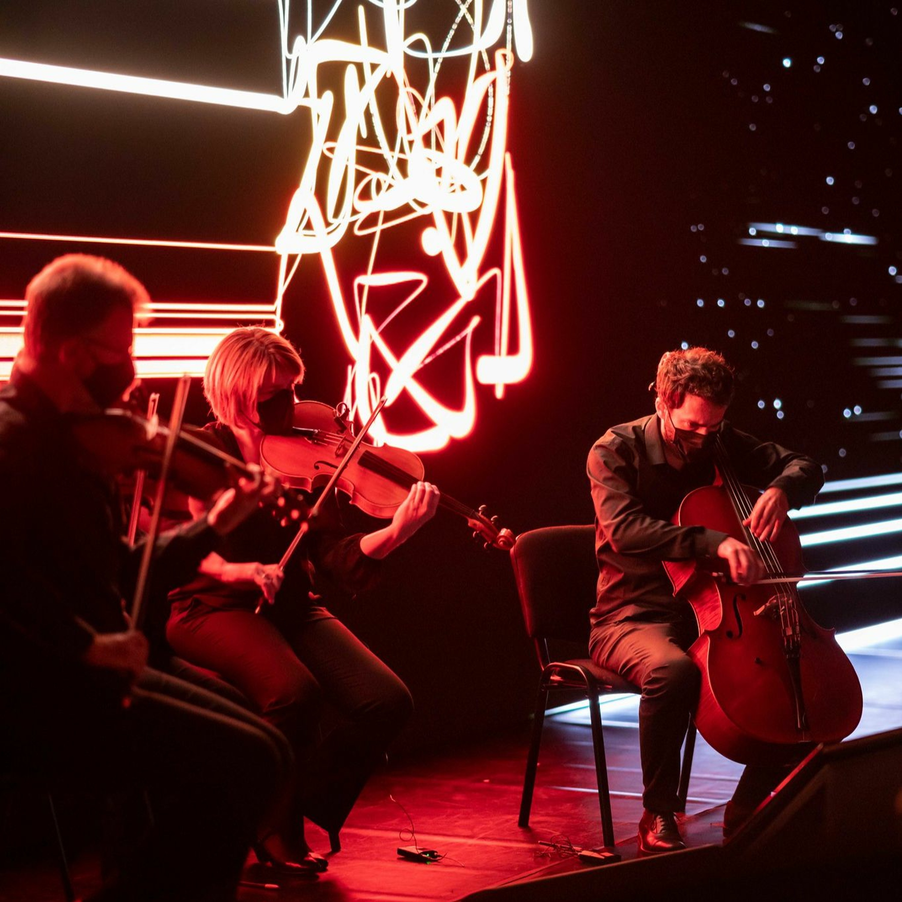The musicians interpret a series of graphic scores that in turn build up the visual scenography, offering the audience the experience of being able to anticipate the “music to come”.