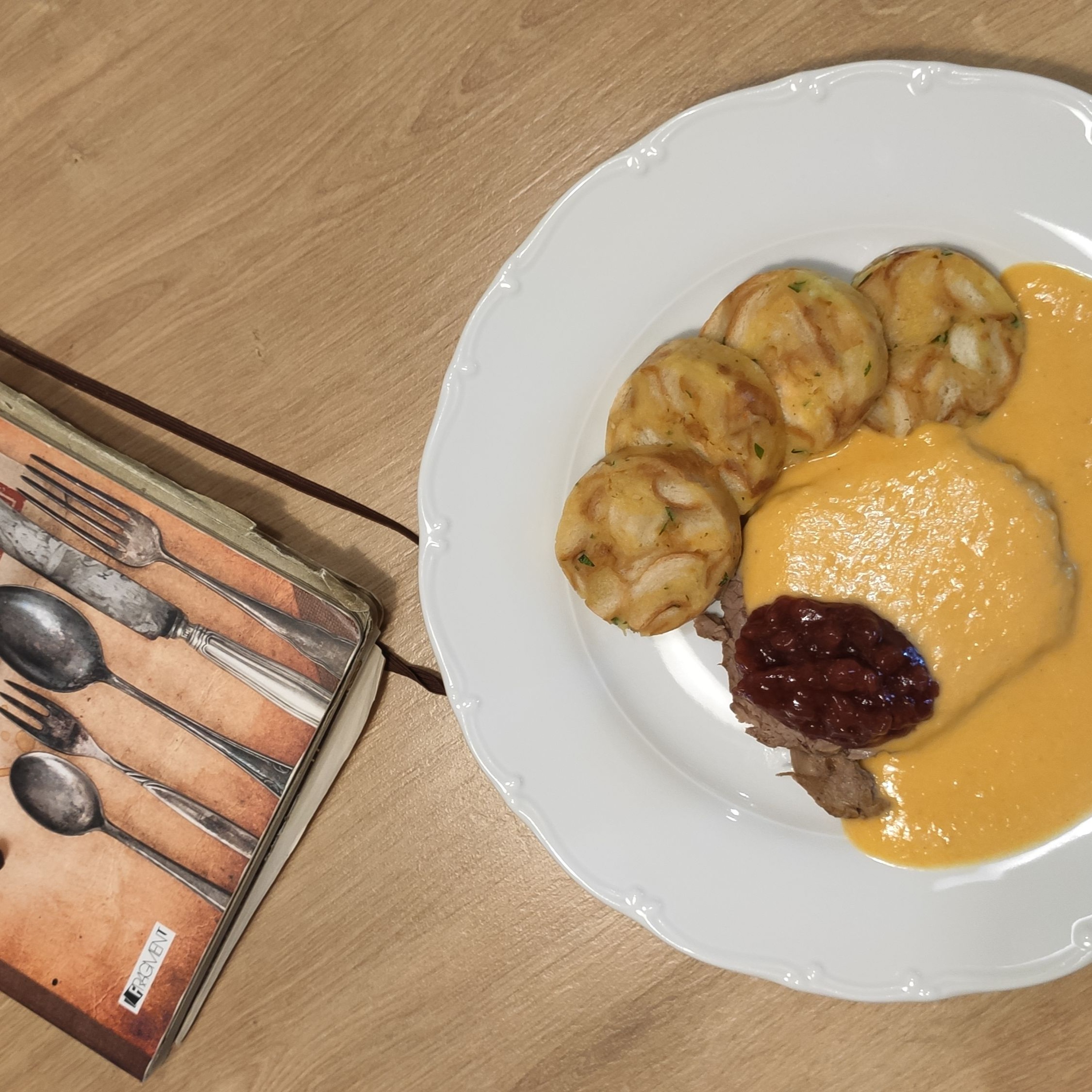Po recept na chutné jedlo zašla naša kolegyňa Mária Čigášová na Arcibiskupský úrad Košickej arcidiecézy. Bola tam už niekoľkokrát. Doteraz sa o svoje know how na prípravu rôznych dobrôt podelili rehoľné sestry, ktoré tam pracujú. Dnes varešku do rúk zobral moderátor a riaditeľ úradu, kňaz Ján Urban. Pripraví nám celé obedné menu: sviečkovú na smotane prešpikovanú slaninkou, k tomu špeciálne knedlíčky a ako dezert upečie netradičný, no pritom na prípravu jednoduchý, jablkový koláč. Nechajme sa teda inšpirovať.