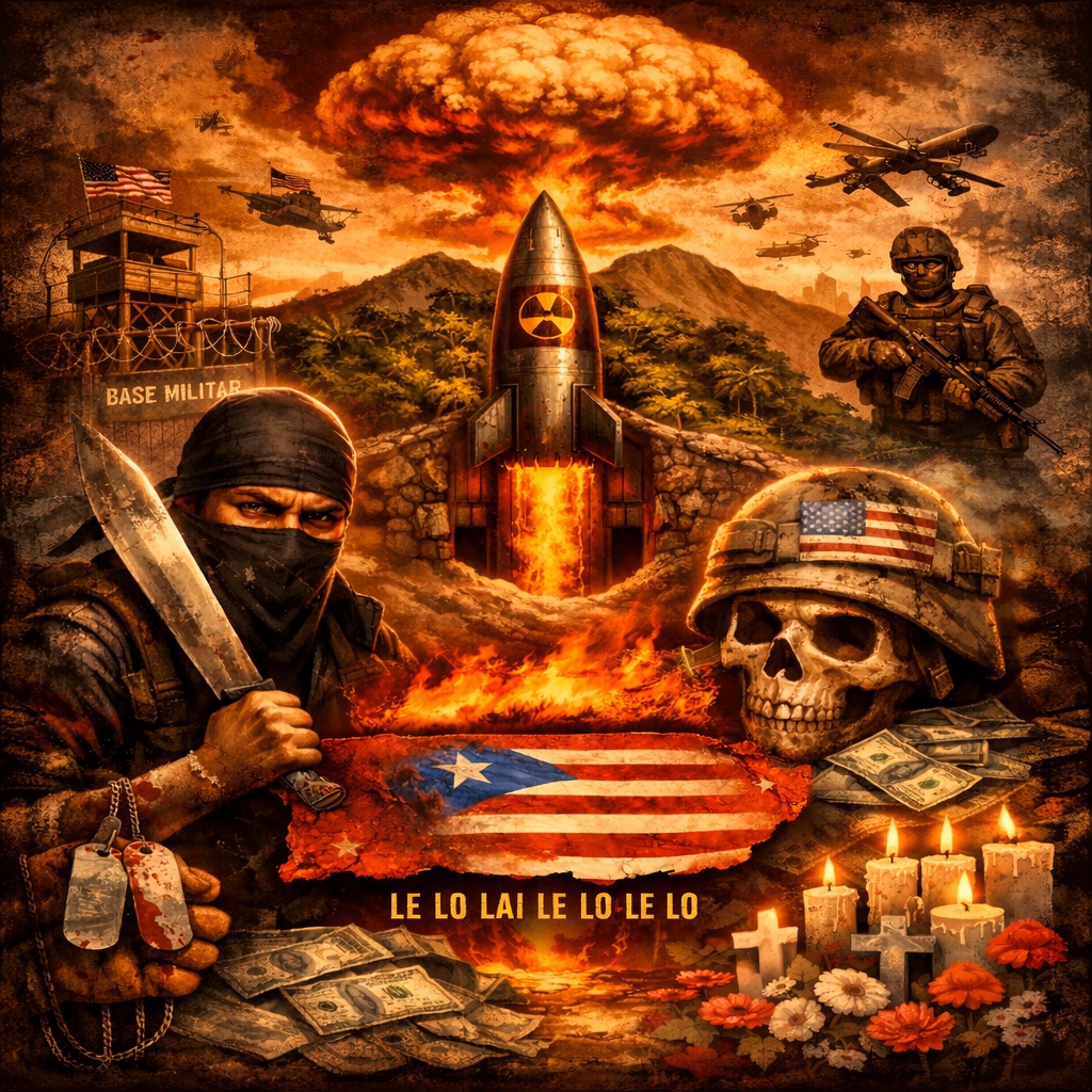 Zona caliente, impacto global, Bomba dormida bajo el palmar, dice “defensa” el primero en atacar, usan mi machete pa ponerte a sangrar. Le-lo-lai-le-lo-le-lo le-lo-lai-le-lo-la