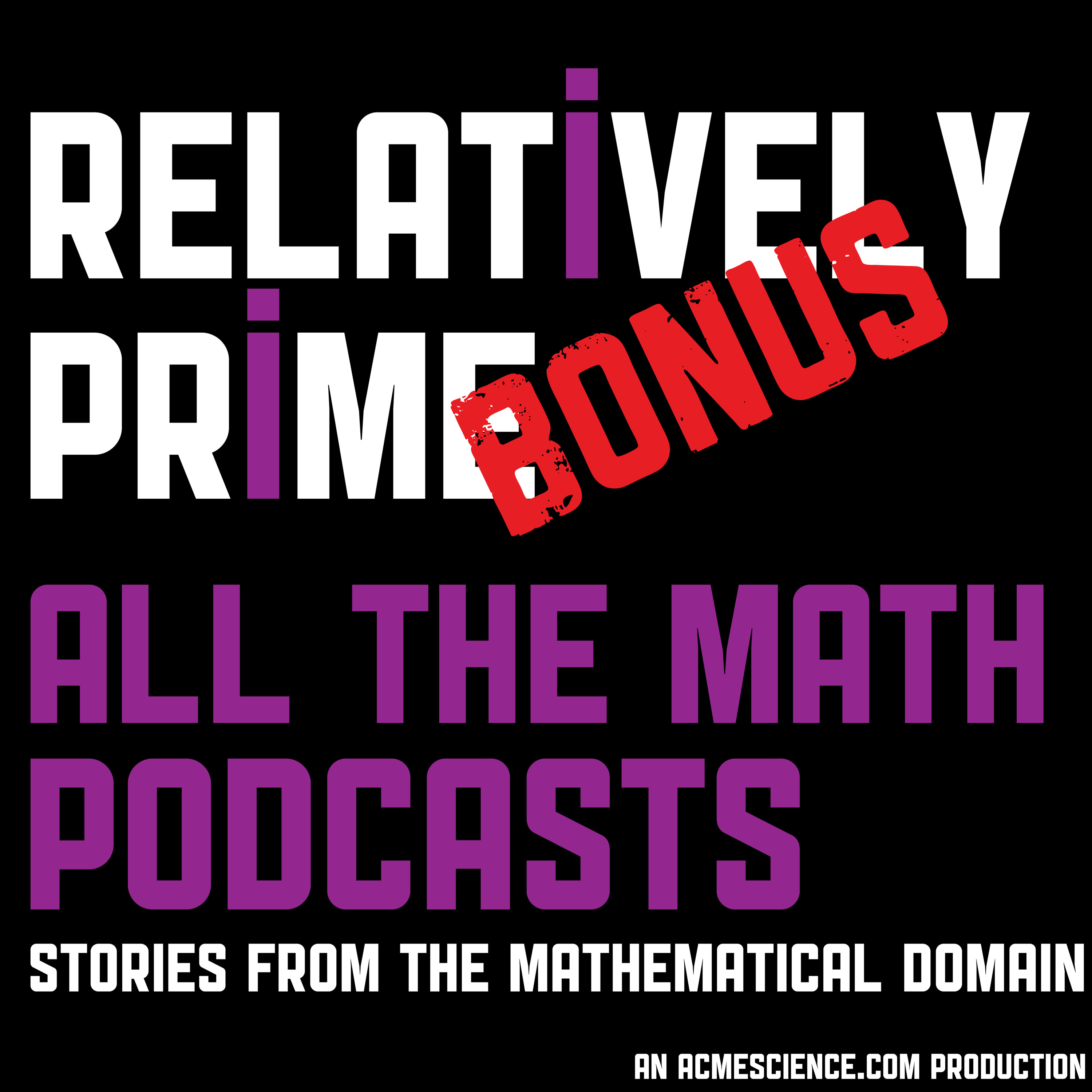 This bonus episode of Relatively Prime features a live podcast recording from 2018's Annual MathsJam Gathering. This live podcast featured segments from Math/Maths, Wrong But Useful, Talkdust, Strongly Connected Components/Travels in a Mathematical World/All Squared, The Aperiodcast, Relatively Prime, Taking Maths Further, and a surprise bonus show. It was a blast to record and hopefully also a blast to listen to.