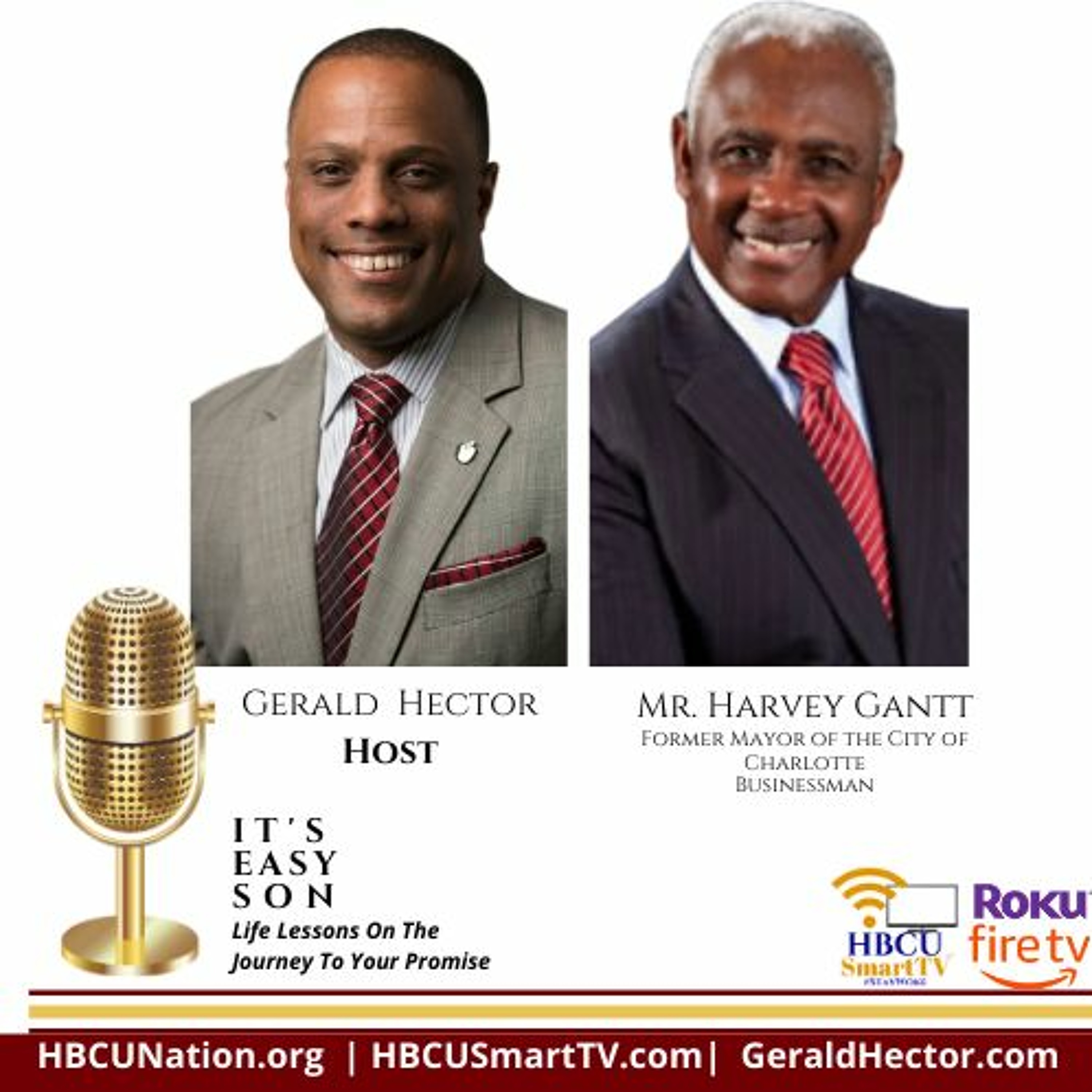 Gerald welcomes to his It's Easy Son podcast Mr. Harvey Gantt. The former Mayor of the City of Charlotte, successful businessman and inspiration to so many people across the nation and the world, he shares his journey from growing in South Carolina, to Iowa State, Clemson and MIT. A man great wisdom and insight, he shares his experiences and what he learned by being in public office and reflects on what he sees in our current dispensation in time around politics, our society and what's next for him. This is another episode you don't want to miss.