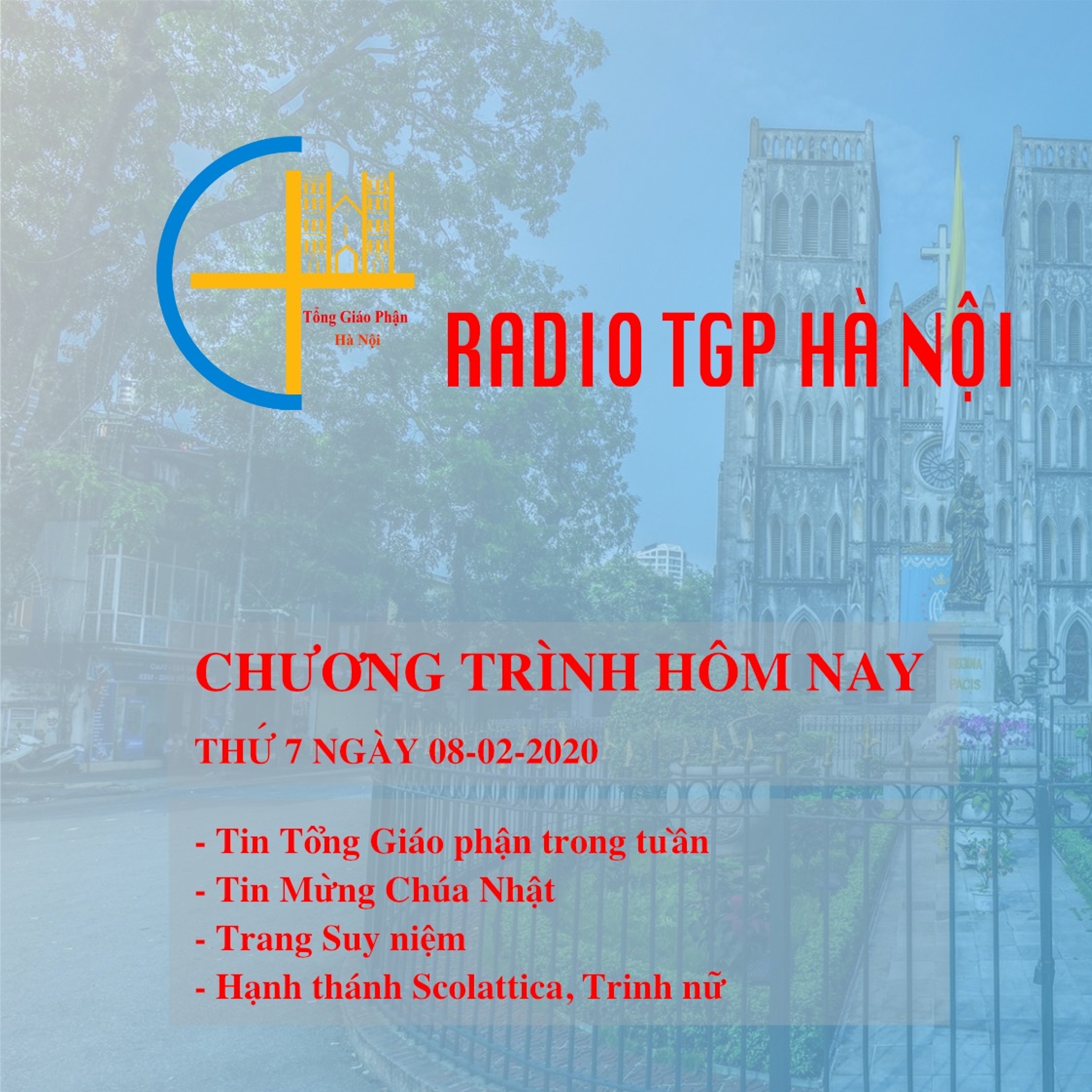 Chương trình gồm có: Tin Tổng Giáo phận tuần qua; Tin Mừng Chúa nhật; Suy niệm; Hạnh thánh Scolattica
