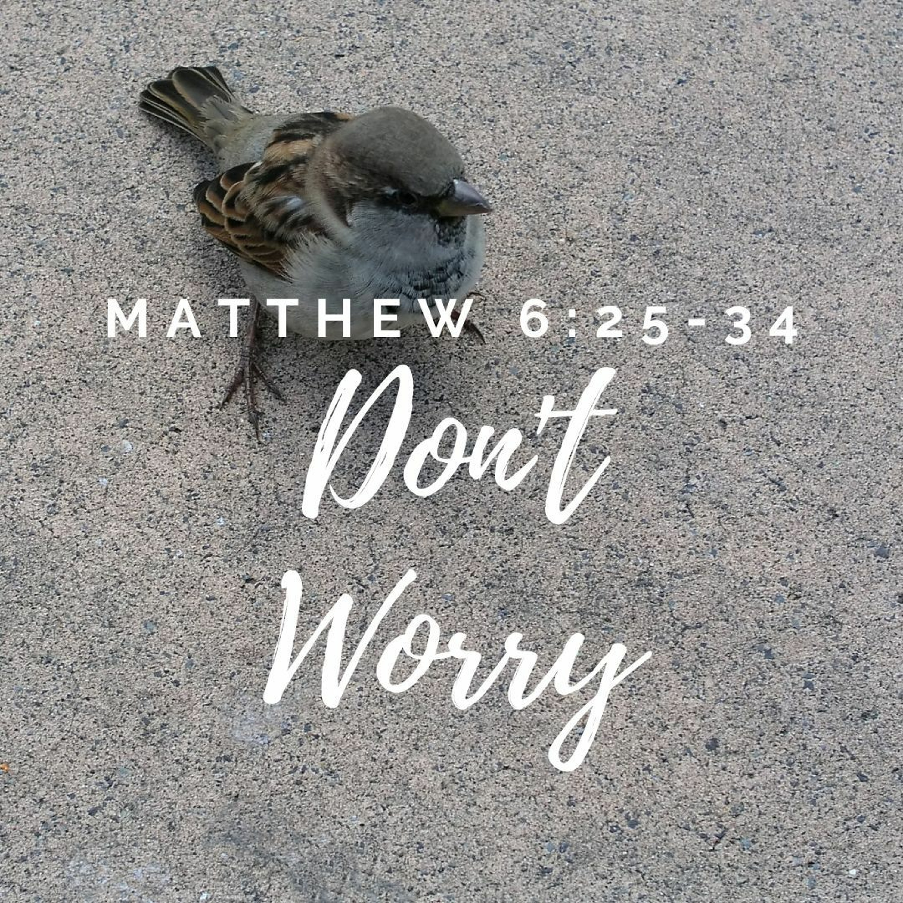 Matthew 6: 25 - 27 “Therefore I tell you, do not worry about your life, what you will eat or drink; or about your body, what you will wear. Is not life more than food, and the body more than clothes? Look at the birds of the air; they do not sow or reap or store away in barns, and yet your heavenly Father feeds them. Are you not much more valuable than they? Can any one of you by worrying add a single hour to your life?"
