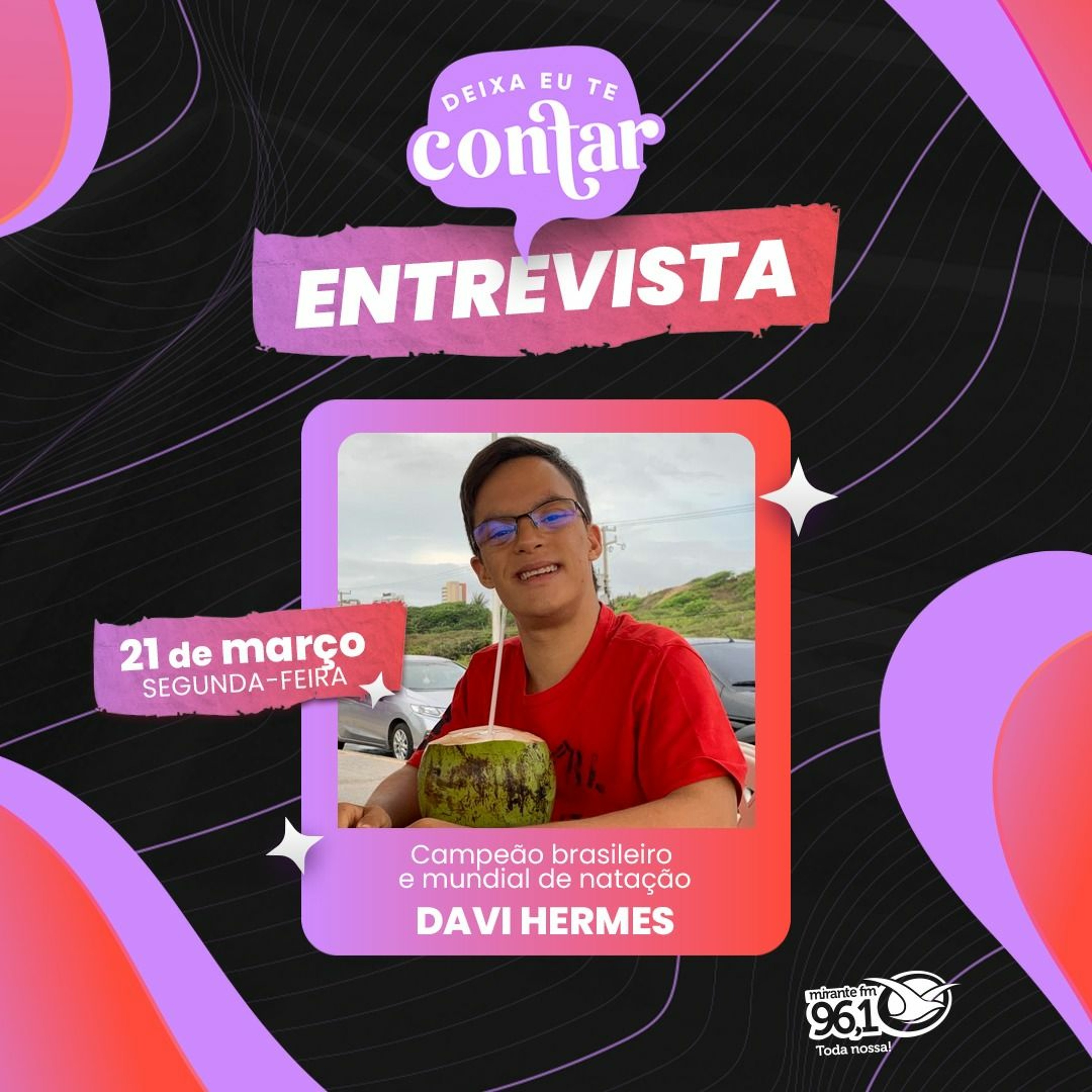 Na entrevista do dia 21/03, Helo Batalha e Jana Fontenele conversam com Davi Hermes, que é campeão brasileiro e mundial de natação e agora, universitário de educação física.