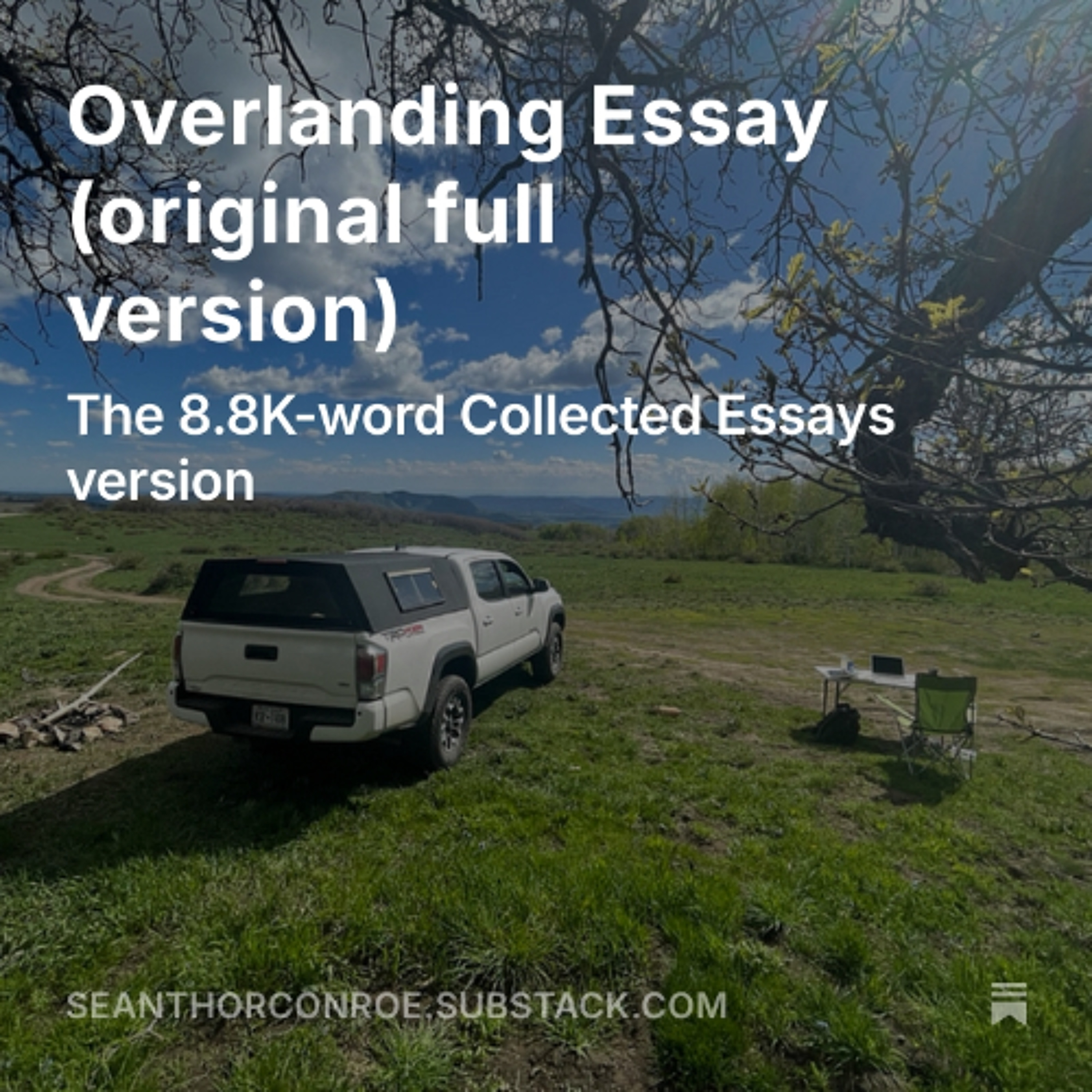 Free preview of this essay I posted to my substack: https://seanthorconroe.substack.com/p/overlanding-essay-original-full-version