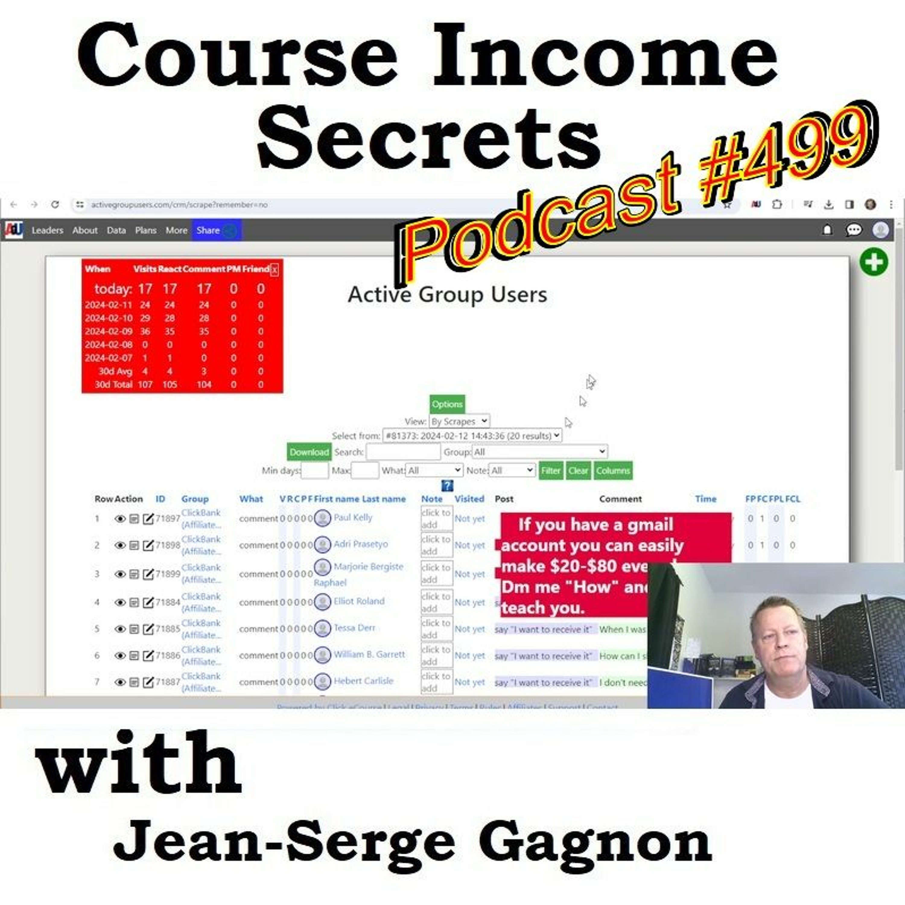 READ MORE and WATCH VIDEO at https://jeansergegagnon.com/course-income-secrets-499-how-to-setup-and-use-active-group-users-software/