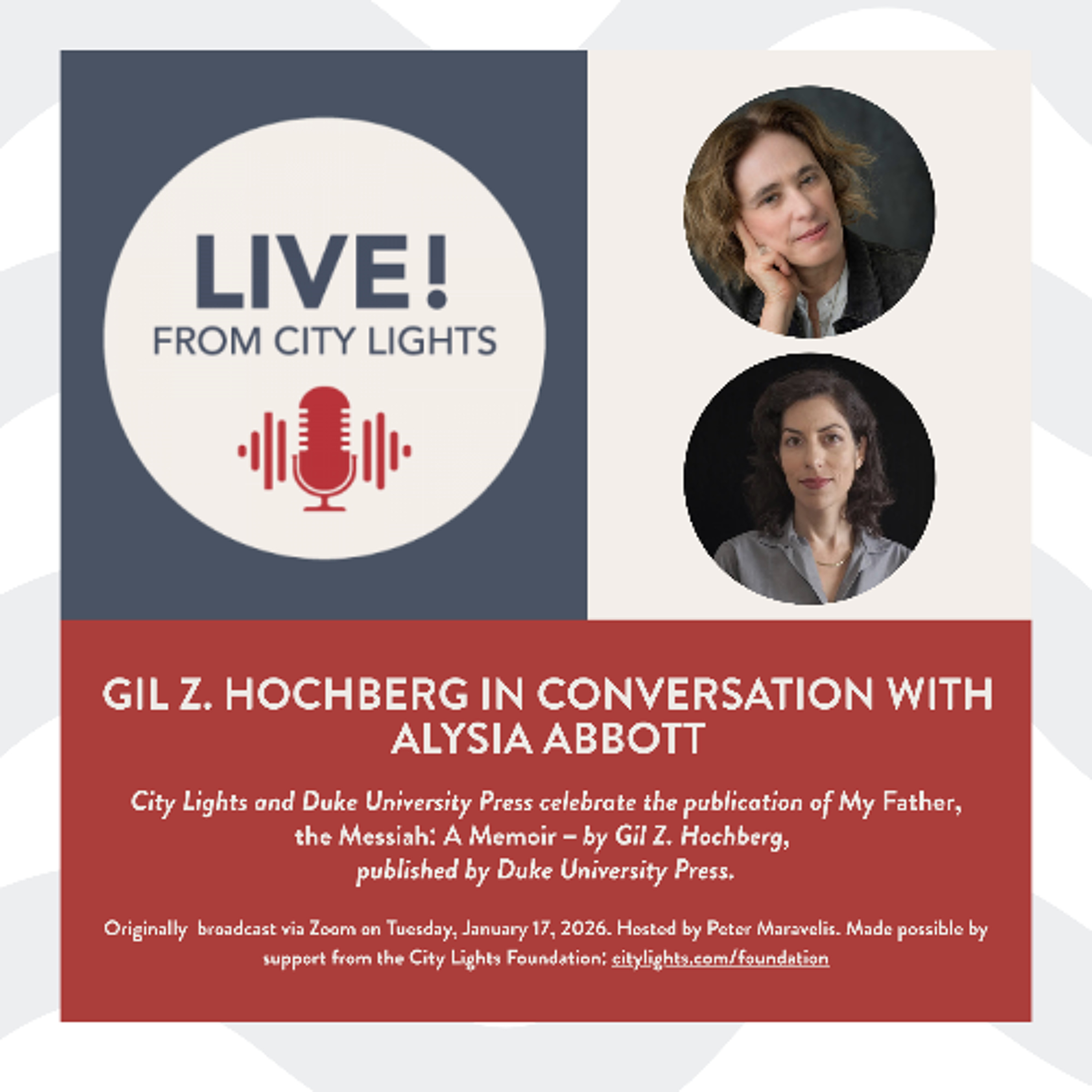 Originally broadcast via Zoom on Tuesday, January 17, 2026. Hosted by Peter Maravelis. Made possible by support from the City Lights Foundation: citylights.com/foundation