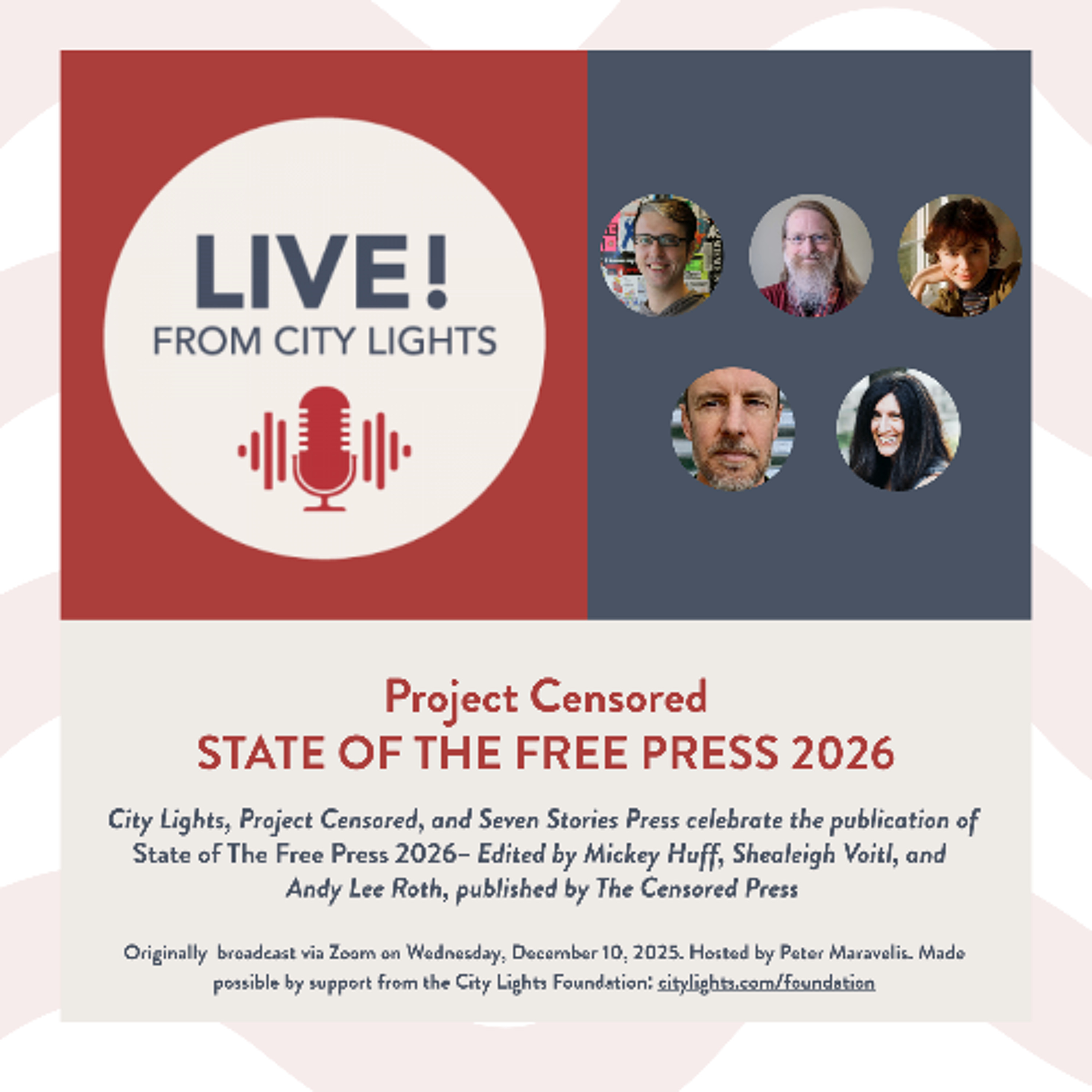 Originally broadcast via Zoom on Wednesday, December 10, 2025. Hosted by Peter Maravelis.Made possible by support from the City Lights Foundation: citylights.com/foundation