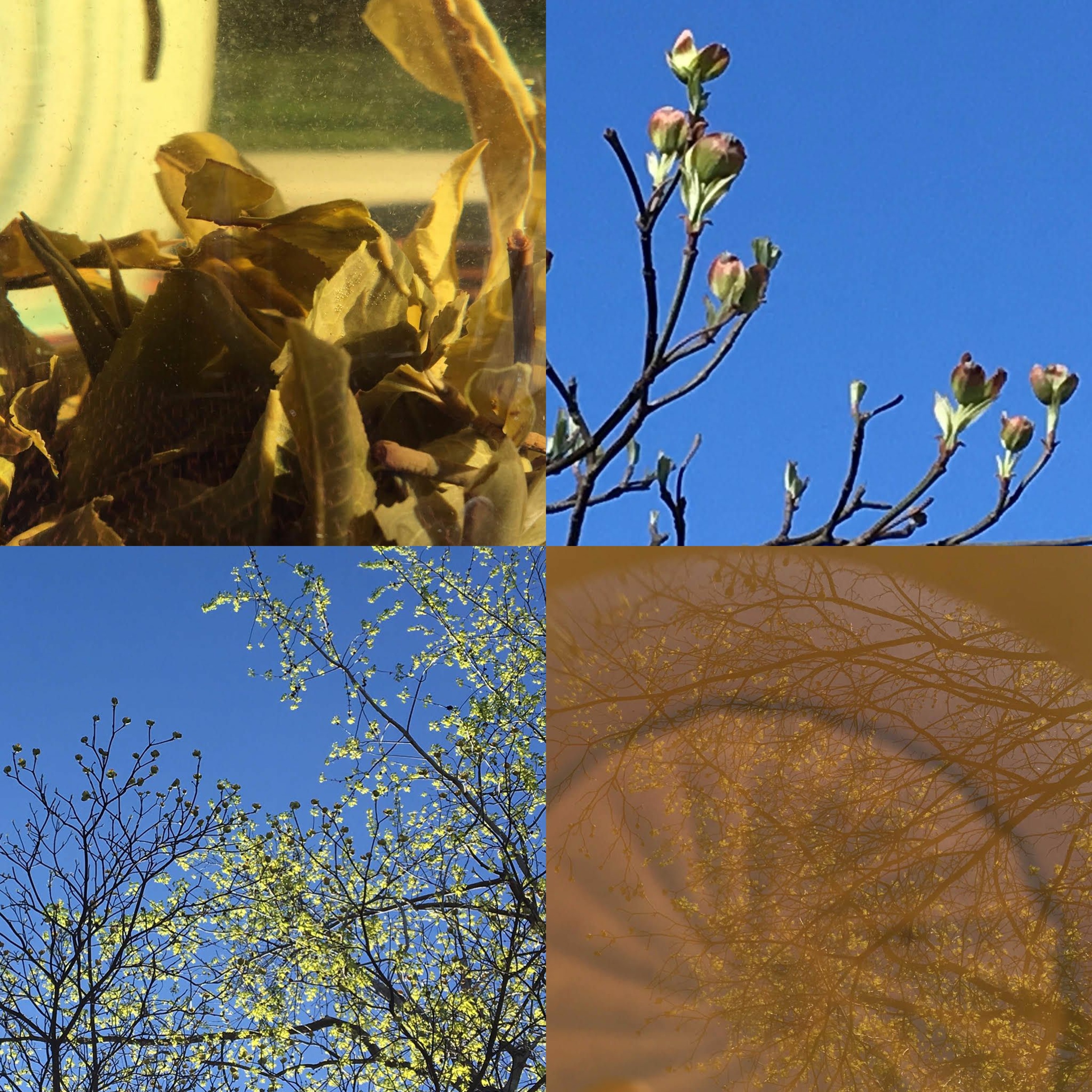 Tea, dogwood and new maple leaves all glowed in the morning sunlight.