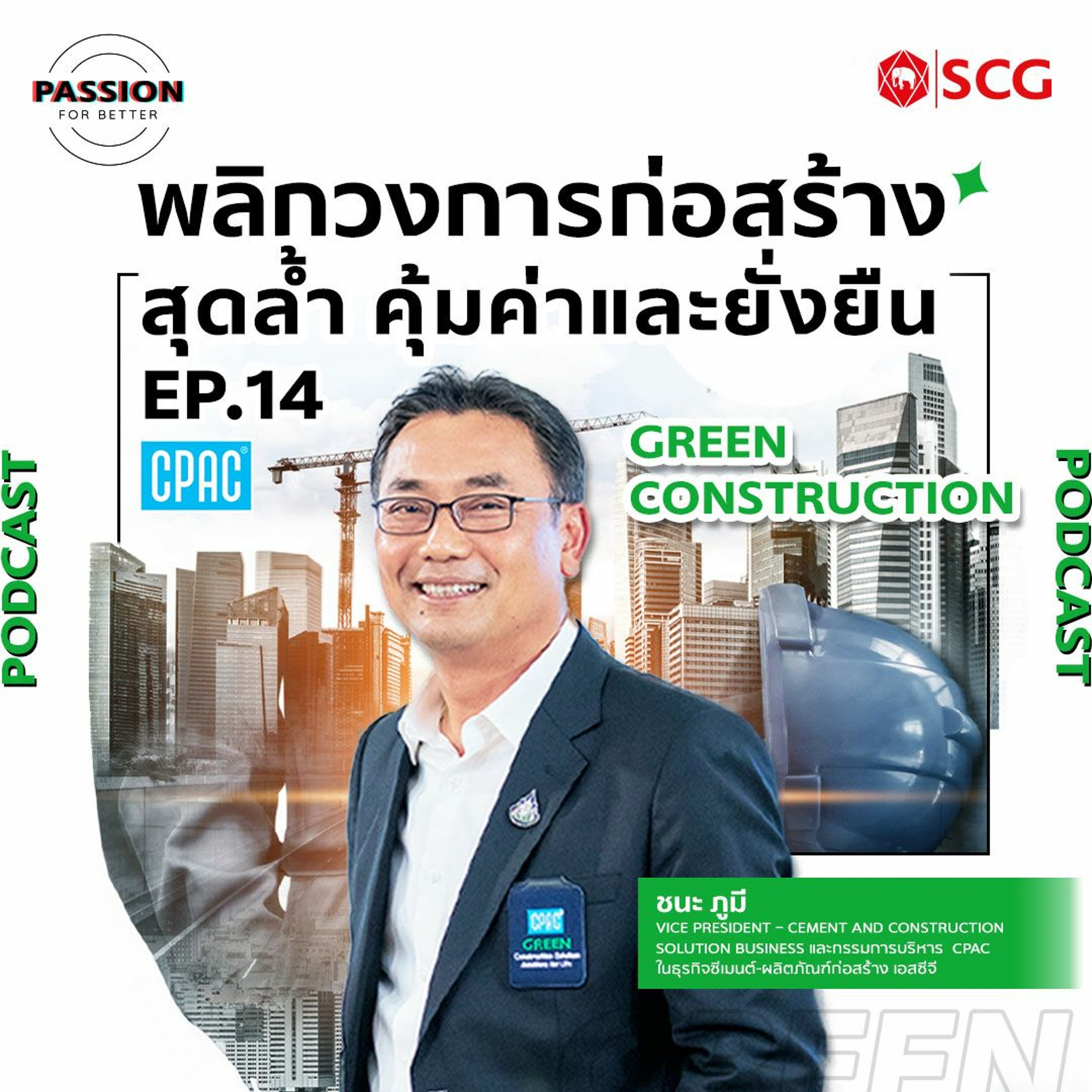 จากคุณชนะ ภูมี Vice President – Cement and Construction Solution Business และกรรมการบริหาร CPAC ในธุรกิจซีเมนต์-ผลิตภัณฑ์ก่อสร้าง เอสซีจี ที่ได้นำเทคโนโลยีดิจิทัล มายกระดับวงการก่อสร้างไทย เพื่อลดของเสีย เพิ่มความคุ้มค่าเงิน คุ้มค่าทรัพยากร ช่วยดูแลสิ่งแวดล้อม