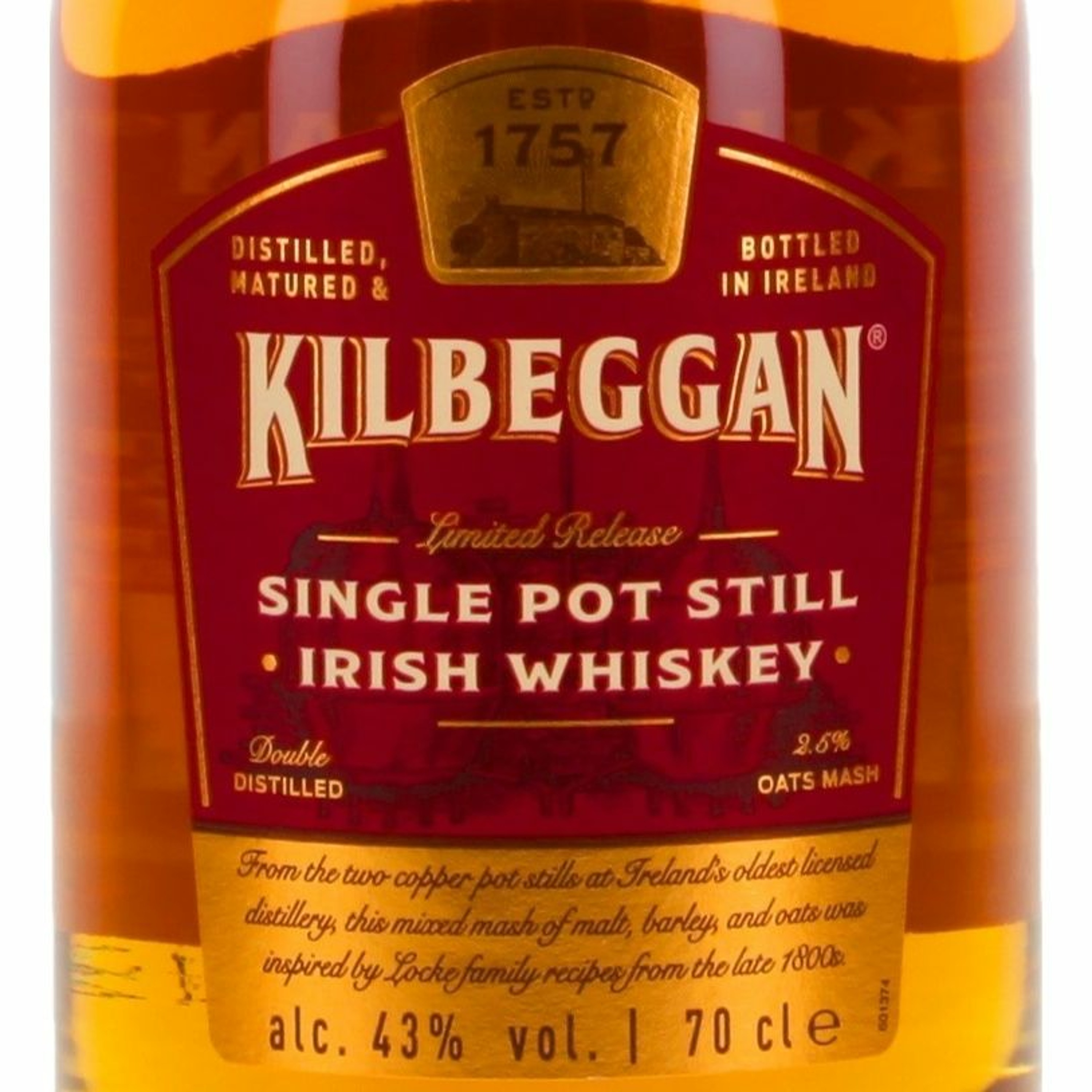 Kilbeggan ist Irlands älteste lizenzierte Destillerie. Sie bringt mit diesem Single Pot Still Whiskey einen neuen Whiskey auf den Markt, der auf Kupferbrennblasen im Stil der vergangenen Jahrhunderte gebrannt wurde. Die Maische aus Malz, Gerste und Hafer entstammt einem traditionellen Rezept der Familie Locke aus dem späten 18. Jahrhundert.
