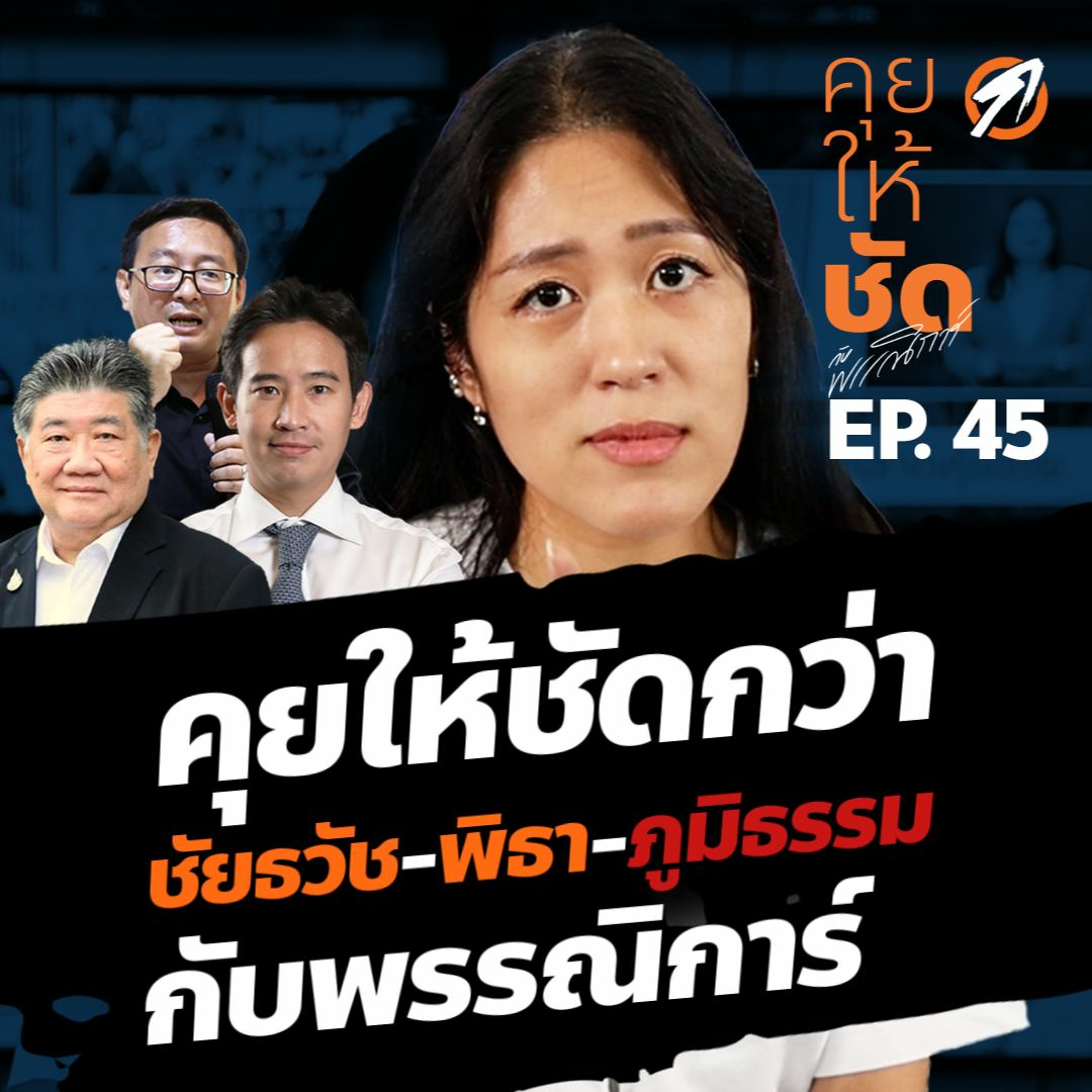 คุยให้ชัดกว่าชัยธวัช-พิธา-ภูมิธรรม ในคุยให้ชัดกับพรรณิการ์ EP.45 กลับมาคุยต่อเนื่องอีกครั้ง หลังเลขาธิการพรรคและหัวหน้าพรรคก้าวไกลแถลงข่าวส่งไม้ต่อการจัดตั้งรัฐบาลให้พรรคเพื่อไทย รวมไปถึงท่าทีของแกนนำพรรคเพื่อไทยหลังจากรับไม้ต่อไปแล้ว มีอะไรซ่อนอยู่ระหว่างบรรทัดในคำแถลงทั้งสาม และทิศทางการฟอร์มรัฐบาลที่จะเกิดขึ้นหลังวันโหวตนายกครั้งถัดไป 27 กรกฎาคมนี้