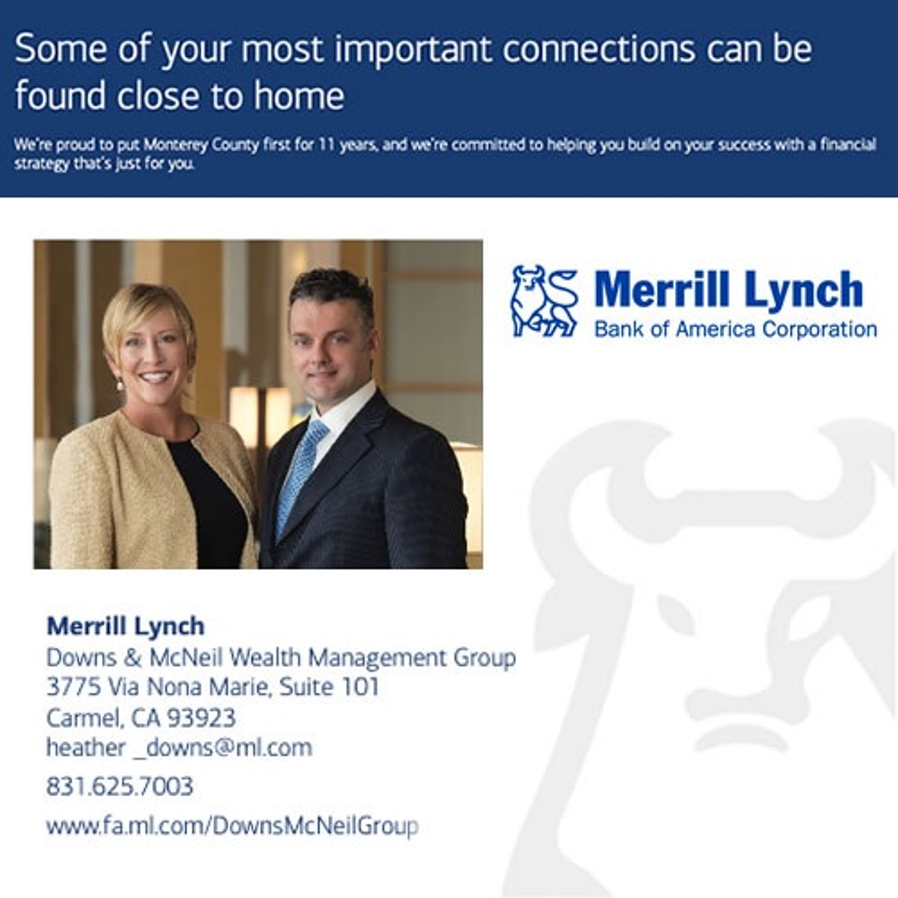 Downs & McNeil Wealth Management Group, supported by the global resources of Merrill Lynch, are committed to building strong client relationships built on trust and personalized service. 831-625-7003.