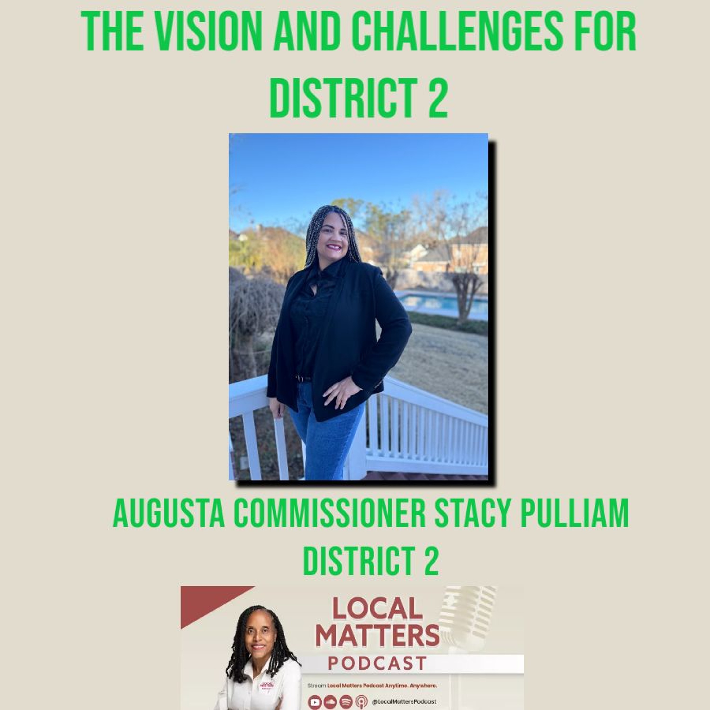 Augusta's District 2 Commissioner, Stacy Pulliam, discusses what it takes to mount a successful run for office, how the district boundaries have changed, and whether there is hope for District 2, She also talks about the importance of continuity with elected officials and capitalizing on state programs to encourage investment in blighted areas.
