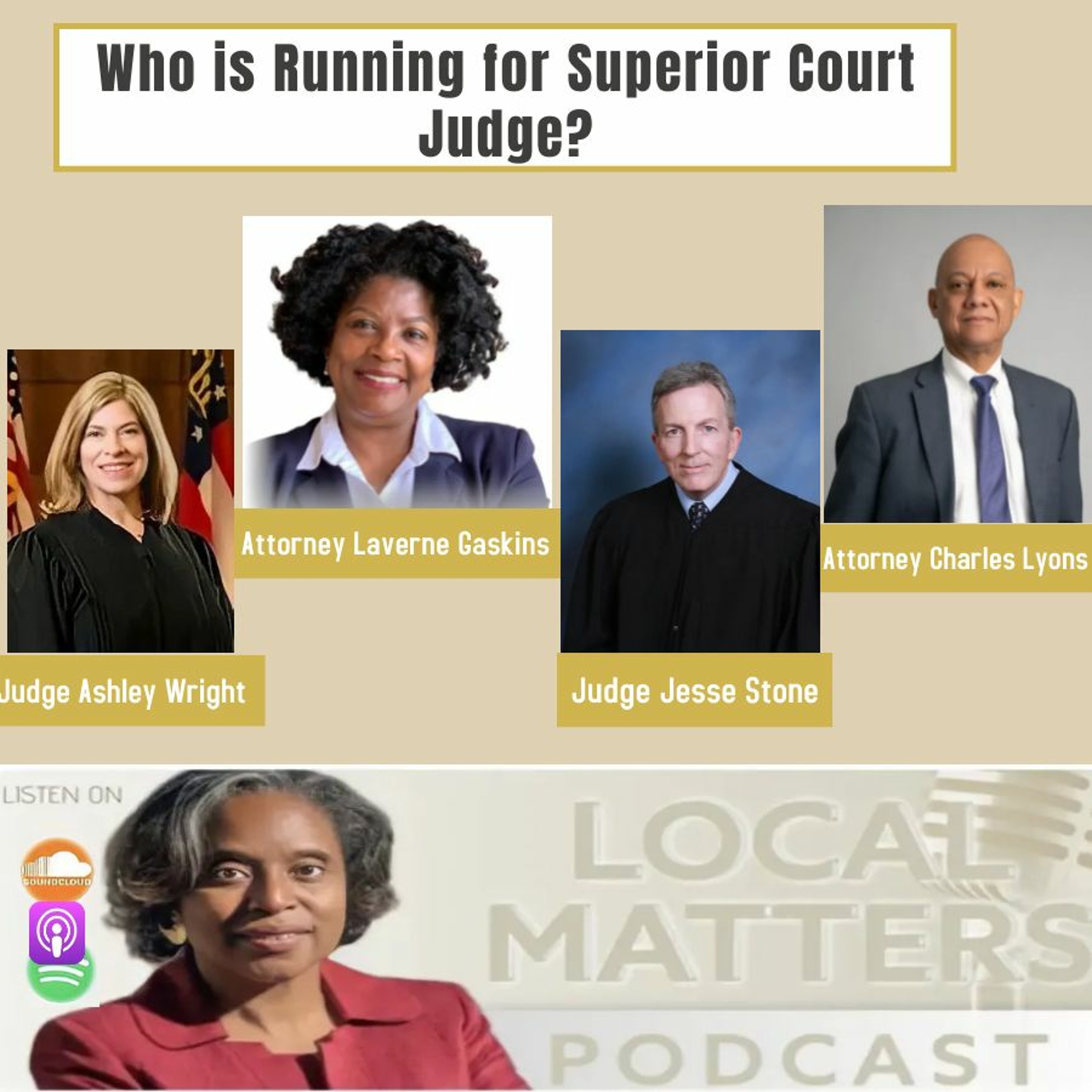 There are four candidates running for Superior Court.. Each of them explains why they decided to run, describes their greatest accomplishments, and what their priorities would be if elected. Listen to Judge Ashley Wright, Attorney Laverne Lewis Gaskins, Judge Jesse Stone, and Attorney Charles Lyons.