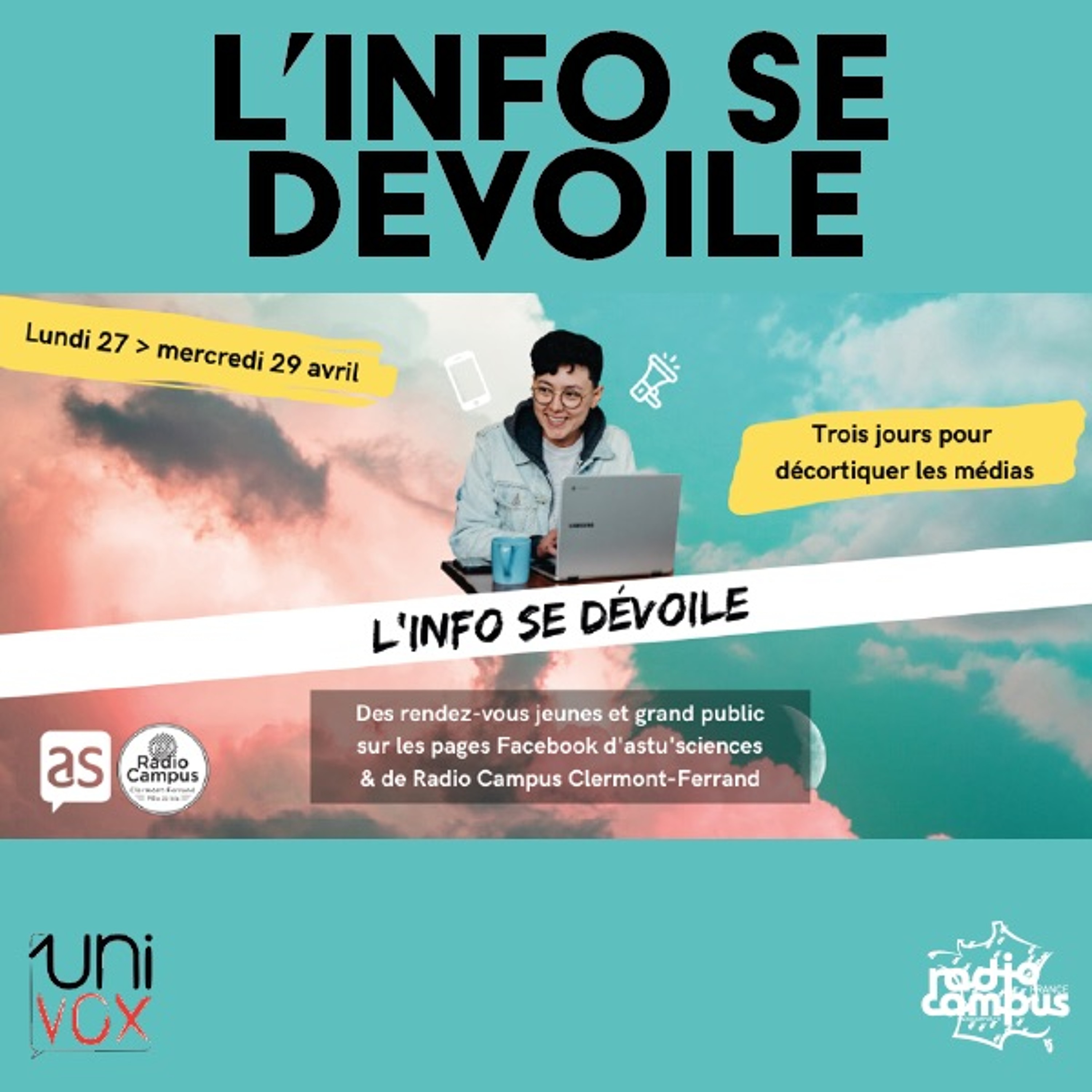 Durant "L'info se dévoile" un événement de trois jours pour décrypter les médias organisé par astu'sciences et Radio Campus Clermont-Ferrand, une question essentielle est apparue en filigrane : Pourquoi faut-il faire de l'EMI (Éducation aux Médias et à l'Information) ?