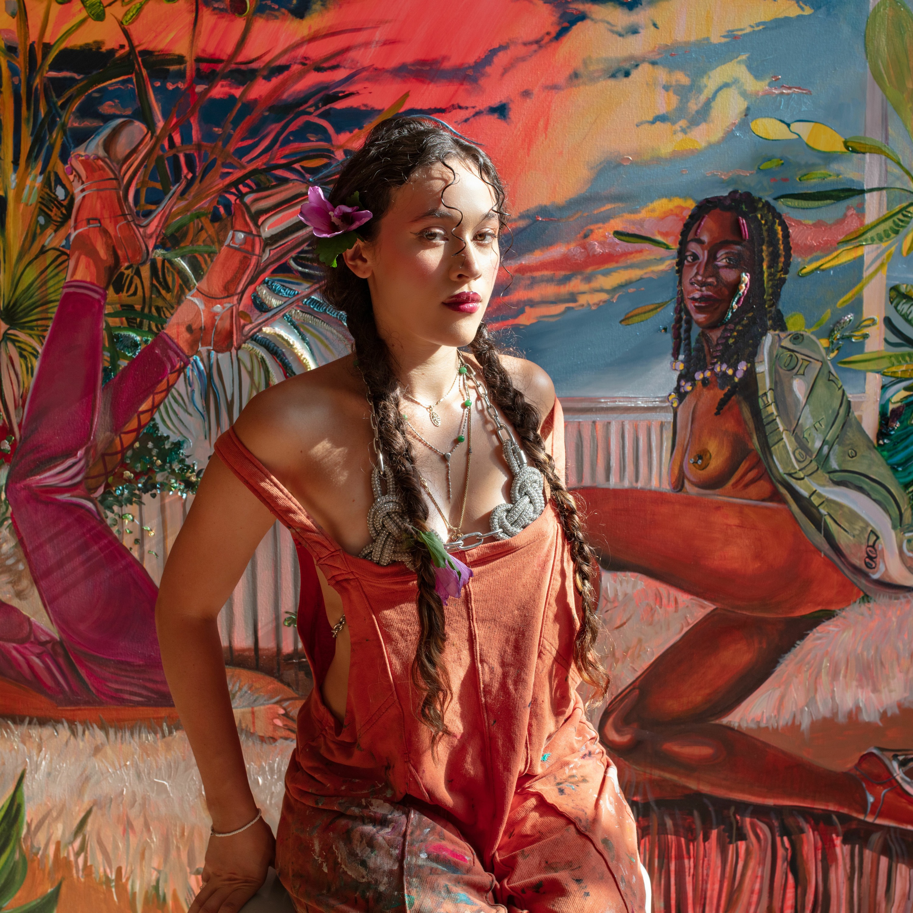 Photo Credit: Gisela McDaniel in her studio, 2023, Photo by Rachel Stern. Courtesy the artist and Pilar Corrias, London