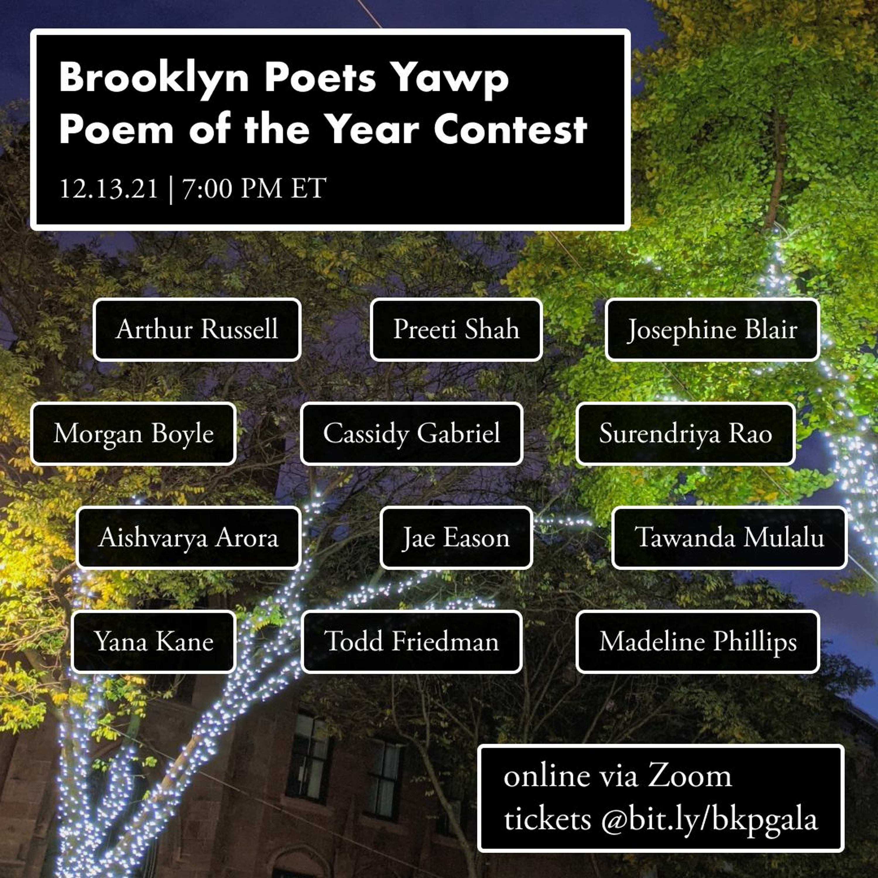2021 Brooklyn Poets Yawp Poem of the Year Contest, featuring winner Josephine Blair Cipriano for "My Best Friend Is Having An Abortion and I Can’t Be There, So I Send Her Flowers" (26:57) and runner-up Arthur Russell for "Unencumbered" (12:52). For more info, go to brooklynpoets.org/events/yawp.