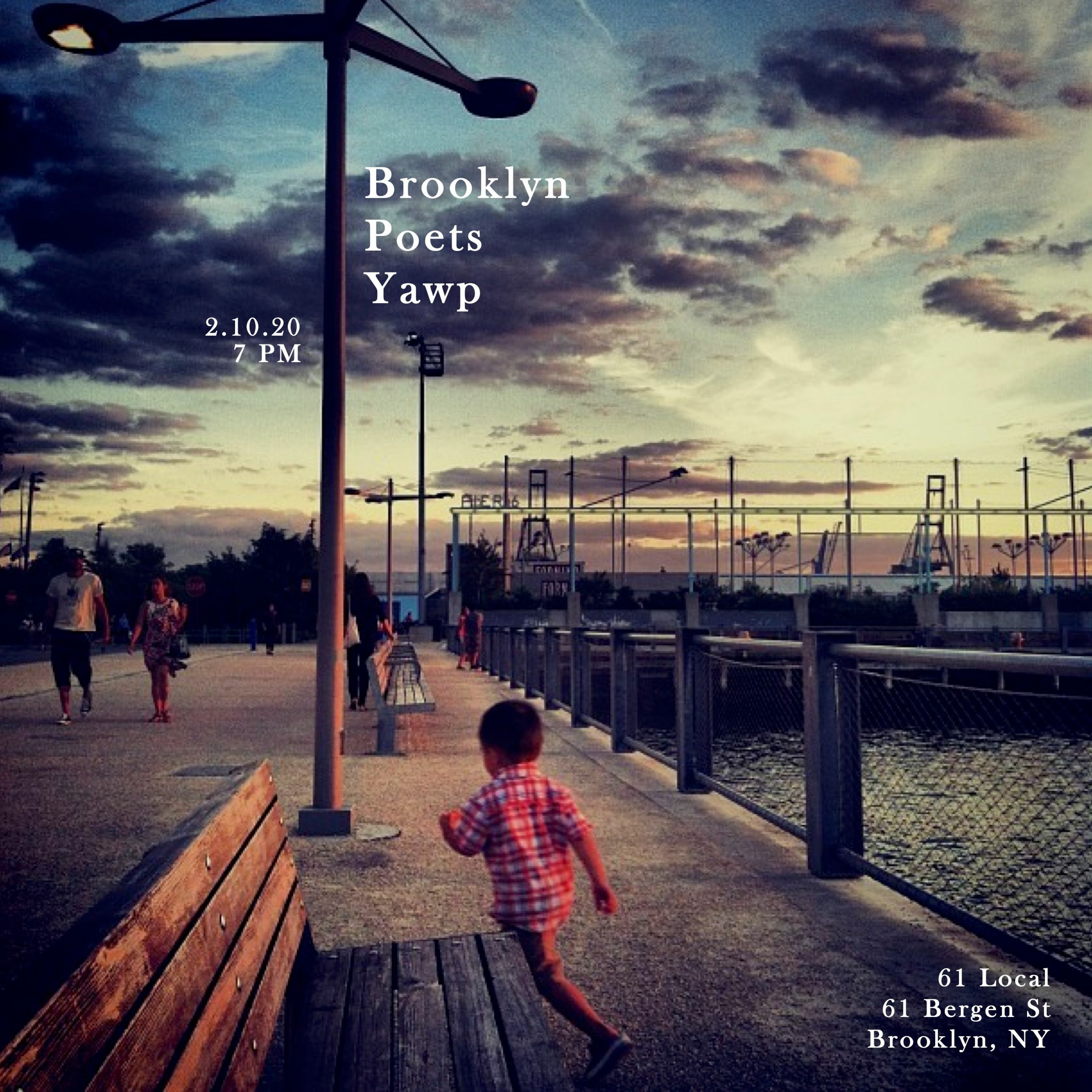 Brooklyn Poets Yawp open mic, 2.10.20, featuring Prof. Julie Hart (8:38) and Poem of the Month winner Jordan Franklin for "grandpa's poem" (1:00:45). For more info, go to brooklynpoets.org/events/yawp.