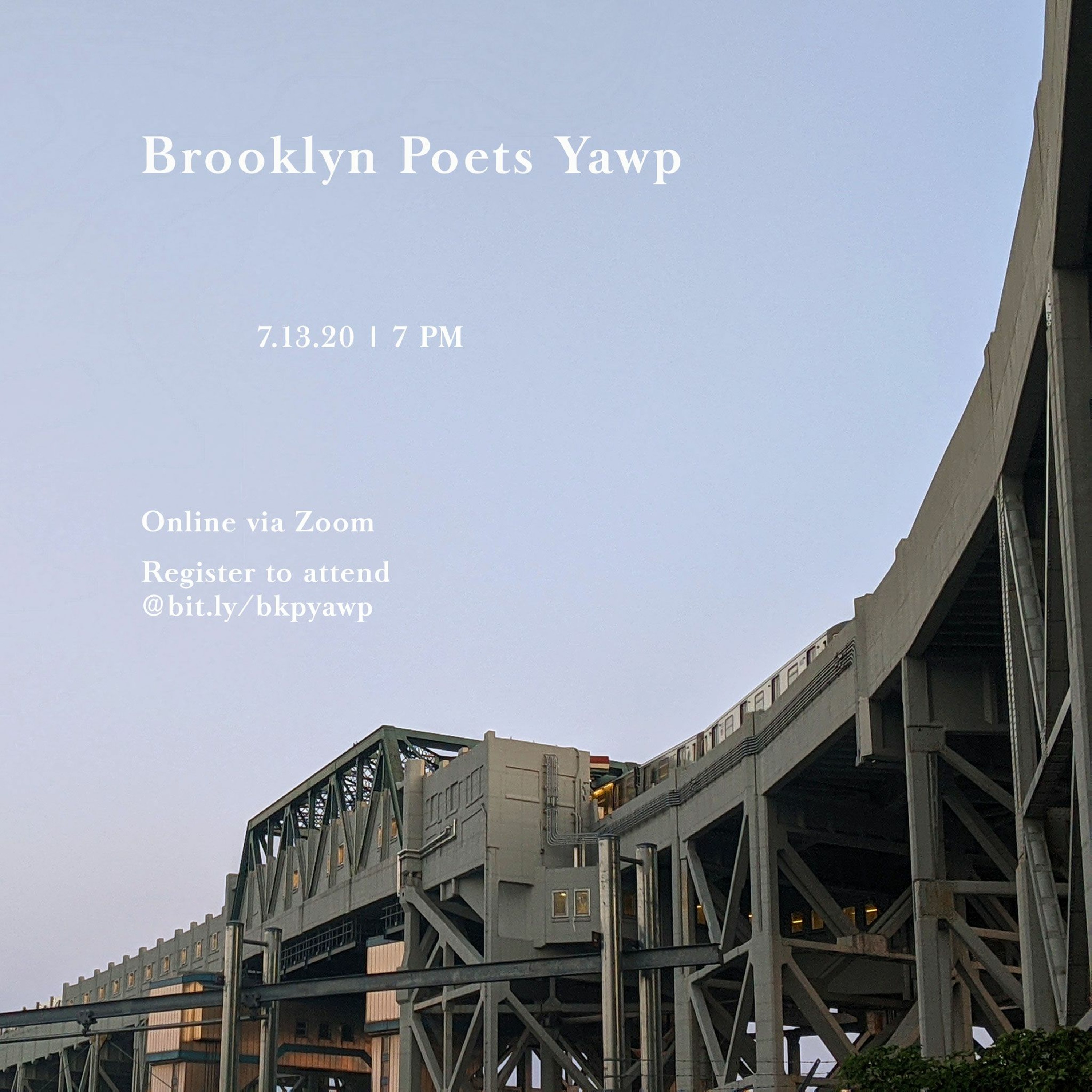 Brooklyn Poets Yawp open mic, 7.13.20, featuring Prof. Candace Williams (12:14) and Poem of the Month winner Preeti Shah for "Fatherless" (50:24). For more info, go to brooklynpoets.org/events/yawp.