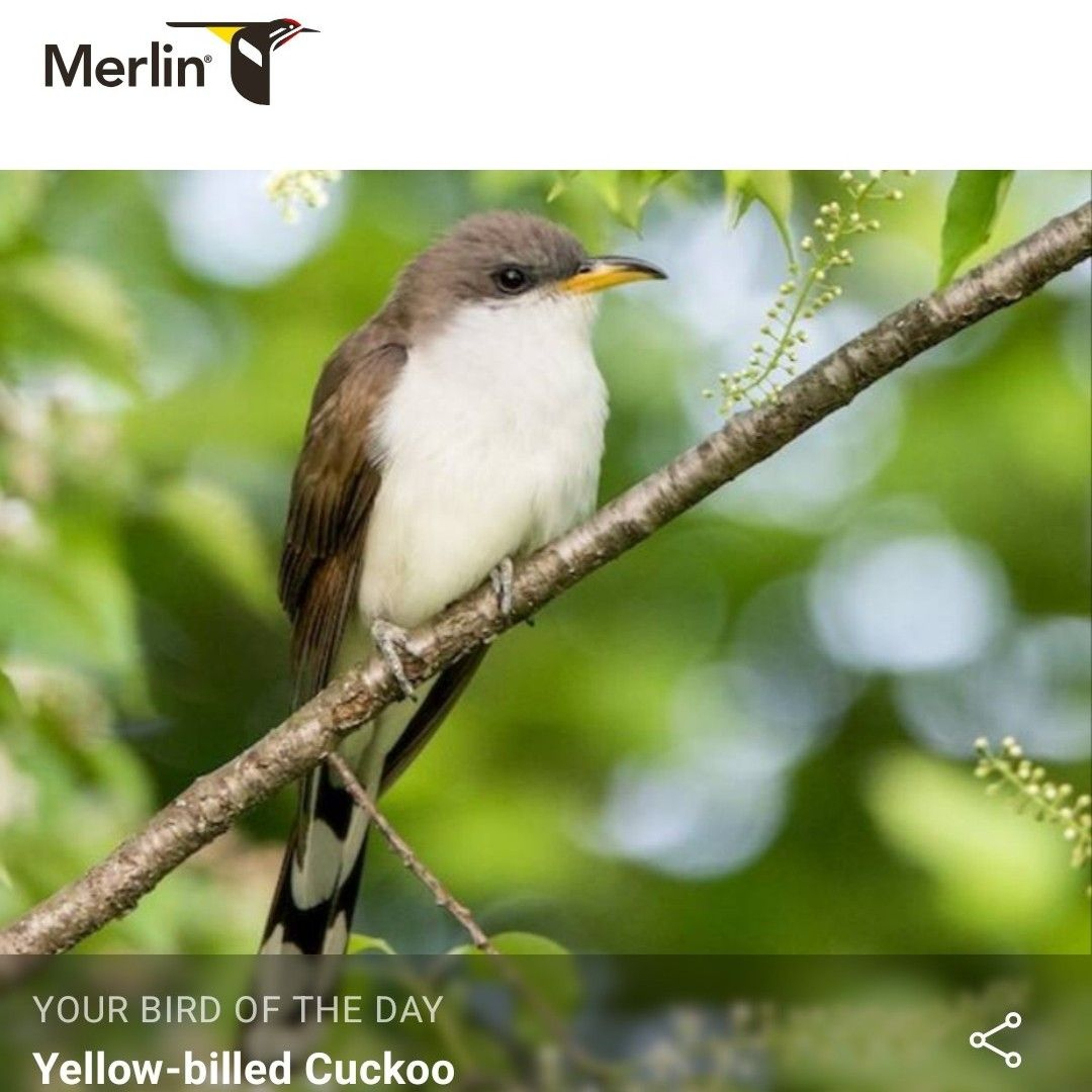 Jacque Howard shares the Merlin Bird ID app Bird Of The Day Yellow-billed Cuckoo
