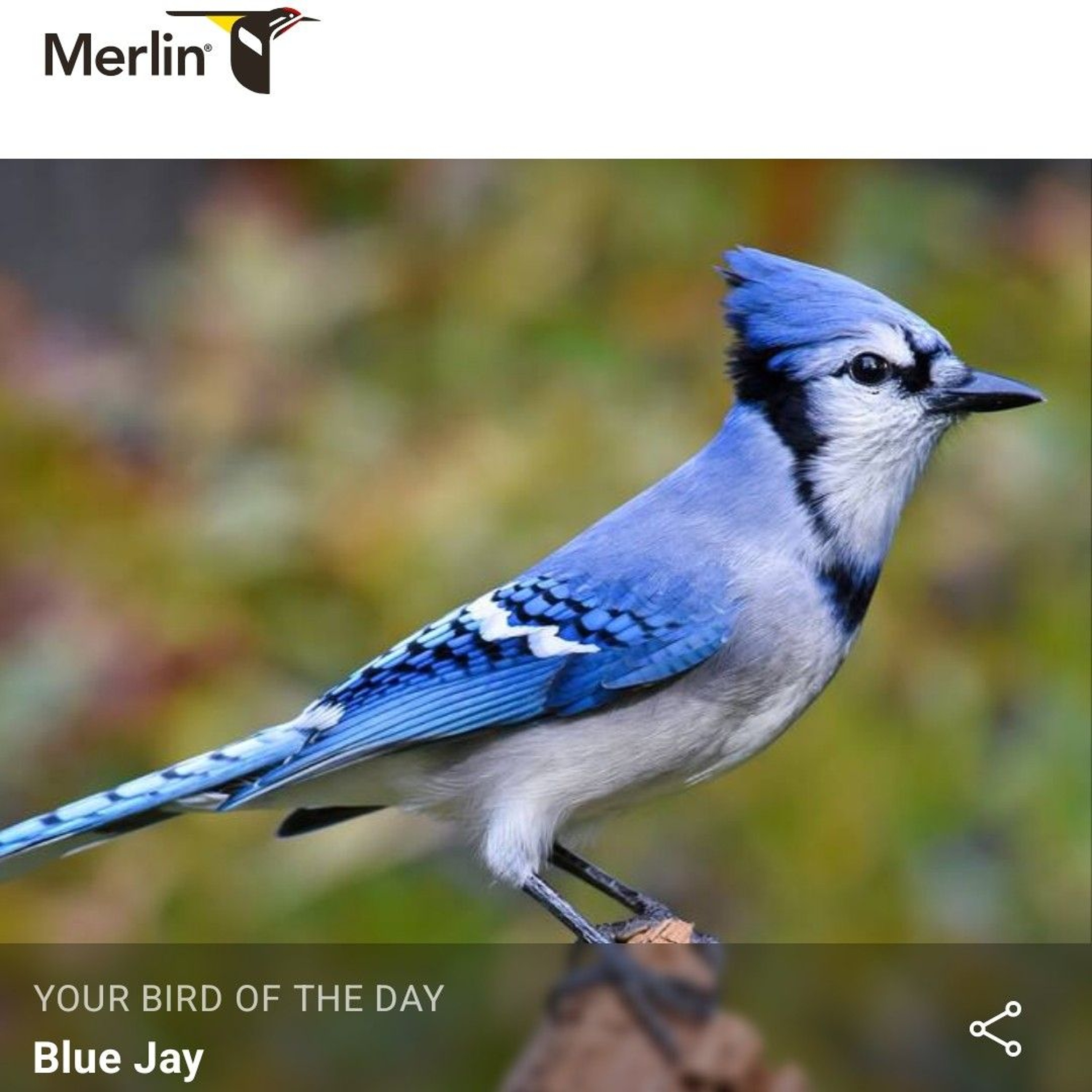 Jacque Howard shares the Merlin Bird ID app Bird Of The Day Blue Jay