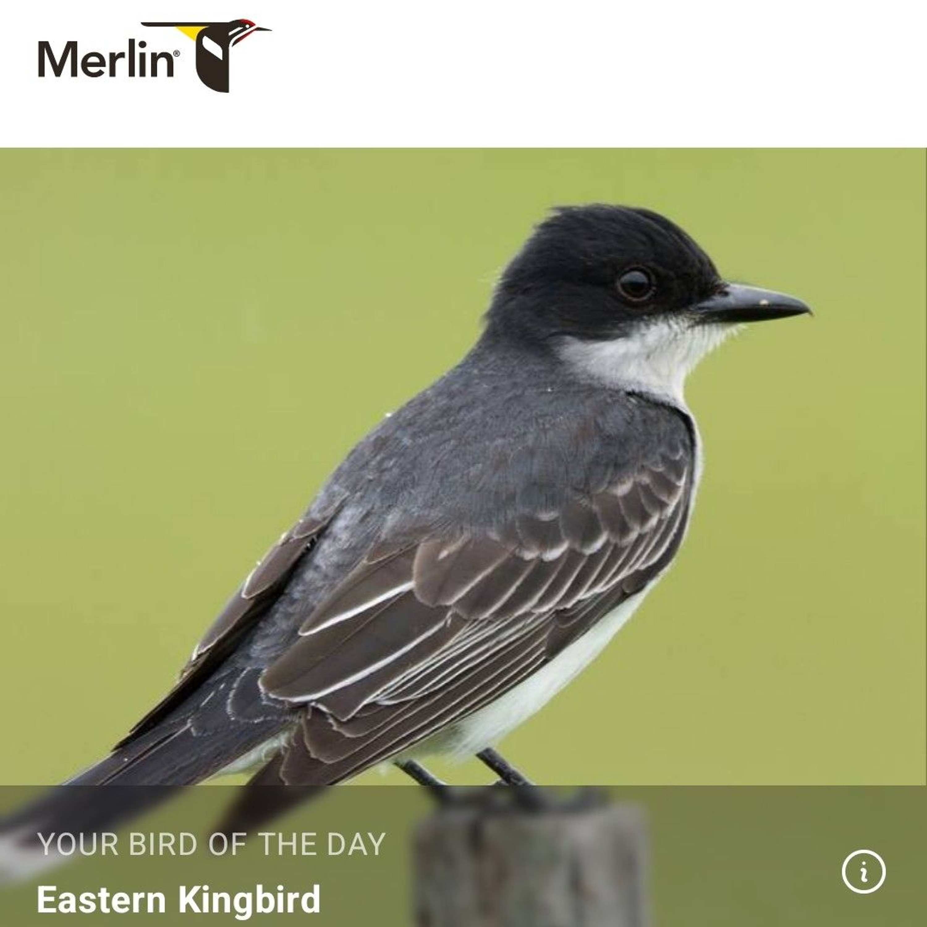 Jacque Howard shares the Merlin Bird ID app Bird Of The Day the Eastern Kingbird.