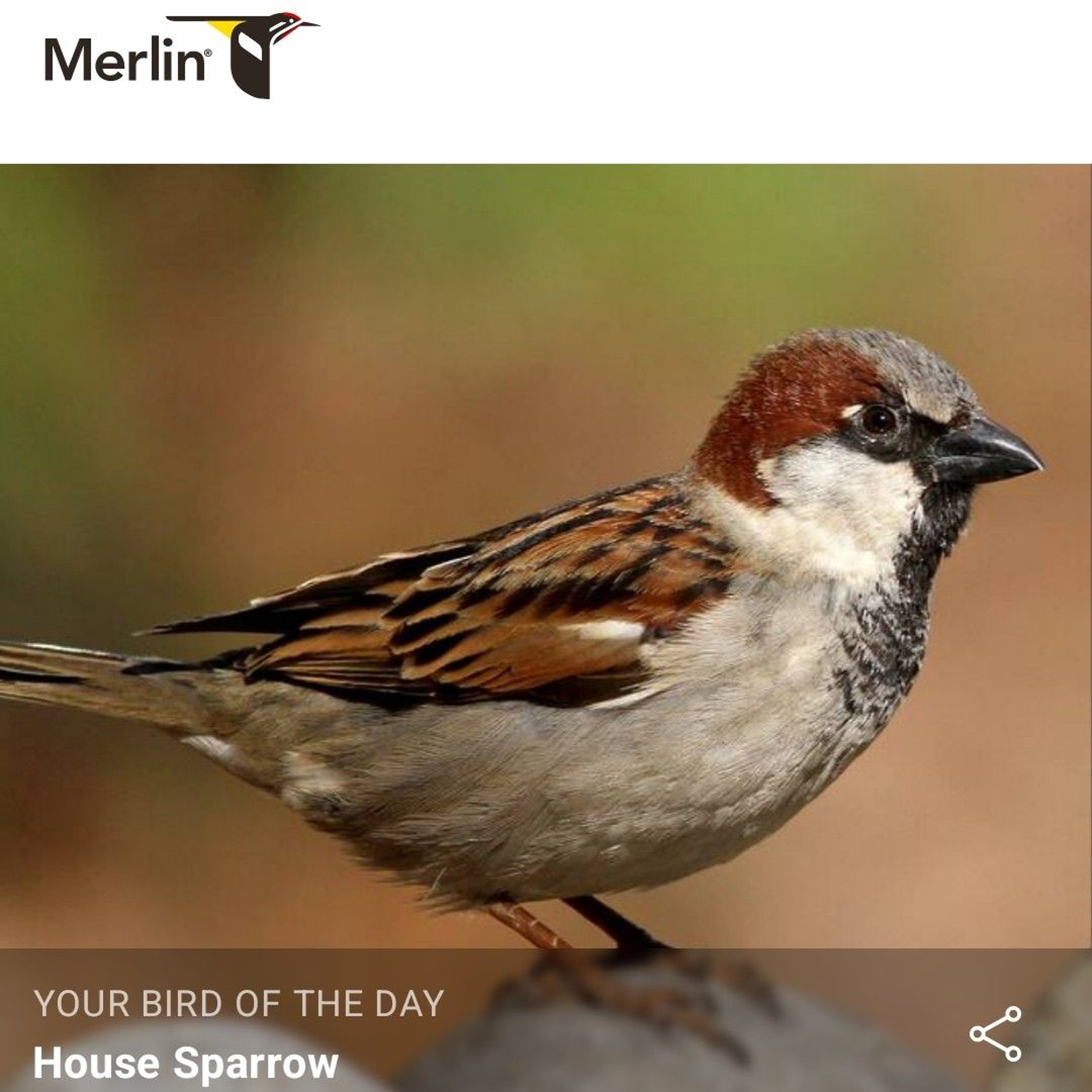 Jacque Howard shares the Merlin Bird ID app Bird Of The Day House Sparrow