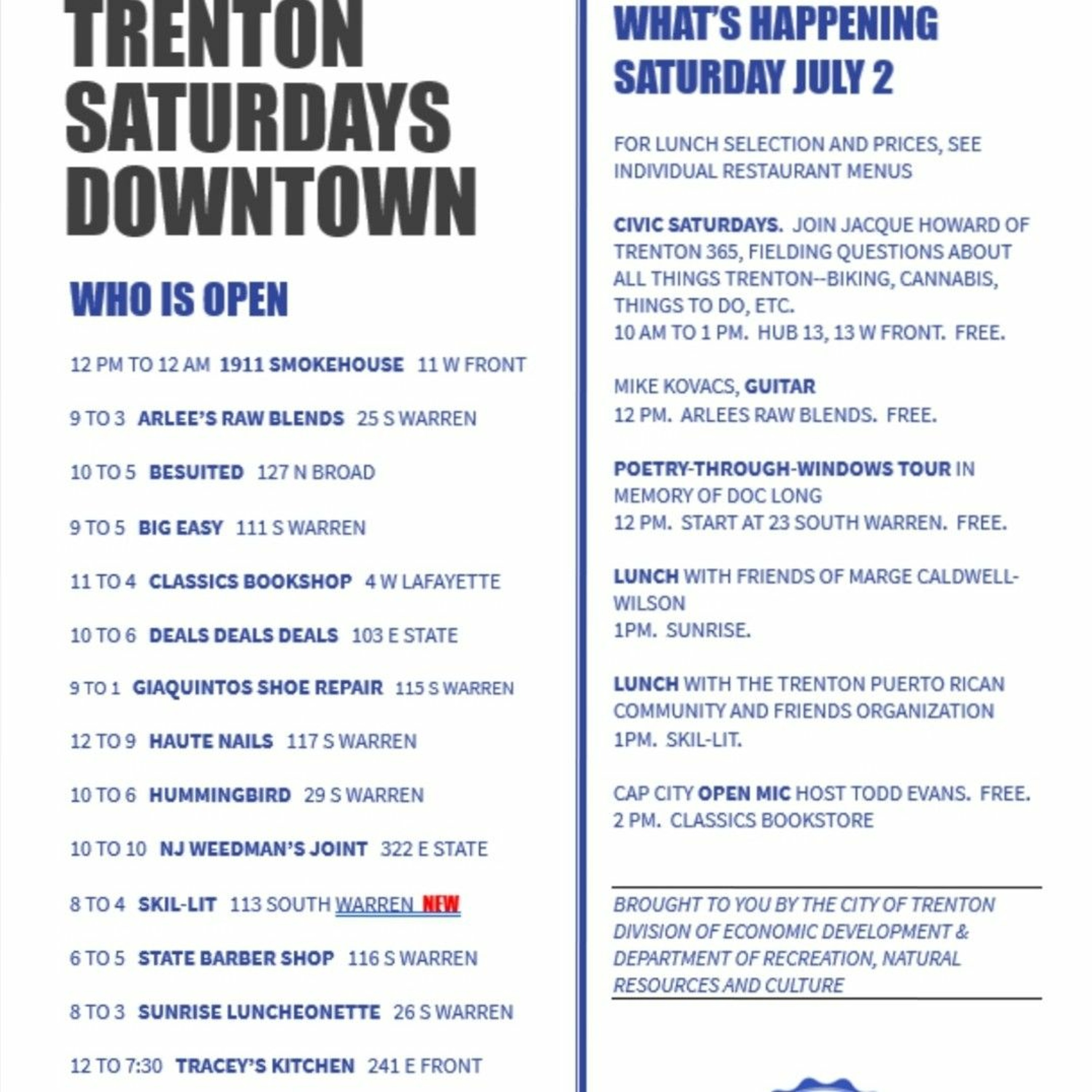 Trenton Saturdays Downtown Announcement 7/2/22