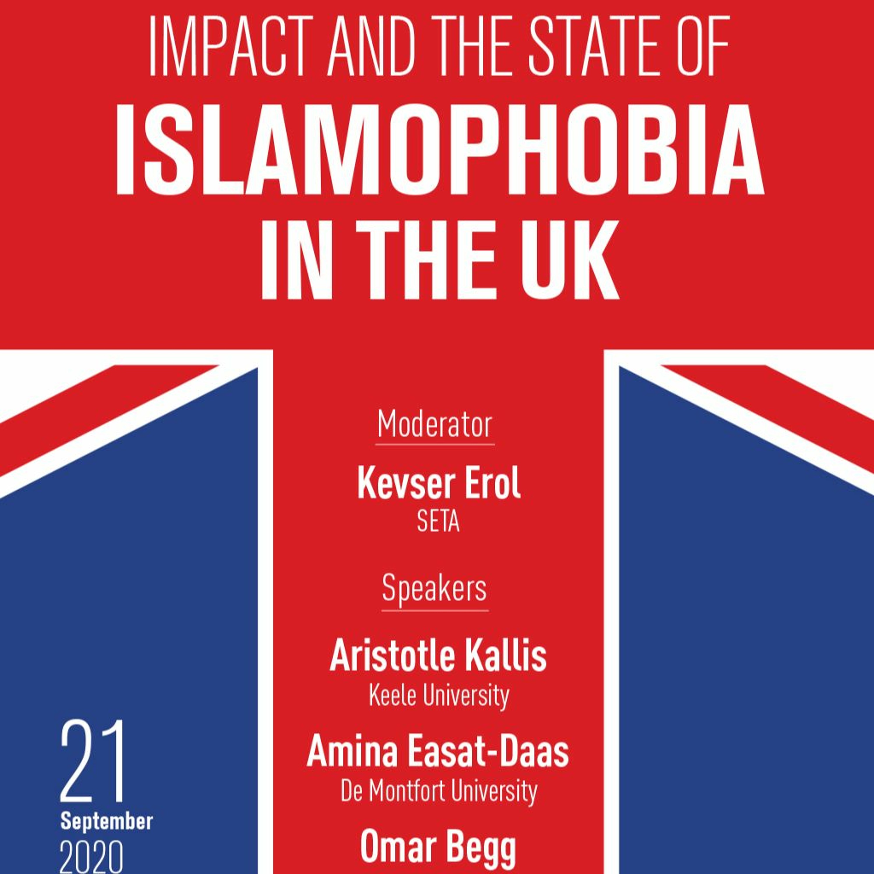 Islamophobia is on the rise in the United Kingdom. The statistics about attacks on houses of prayers and on people who appear phenotypically Muslim speak for themselves. Since many years Muslims become direct targets in the society or are excluded from the job market even if they show same qualifications as their fellow citizens. This panel organized by SETA Brussels focusses on the daily lives, societal and institutional challenges Islamophobia causes for British Muslims in the United Kingdom. Additionally, legal support, legal process improvement and lobbying aspects for Muslim communities in tackling Islamophobia will be raised during the web-panel as well.