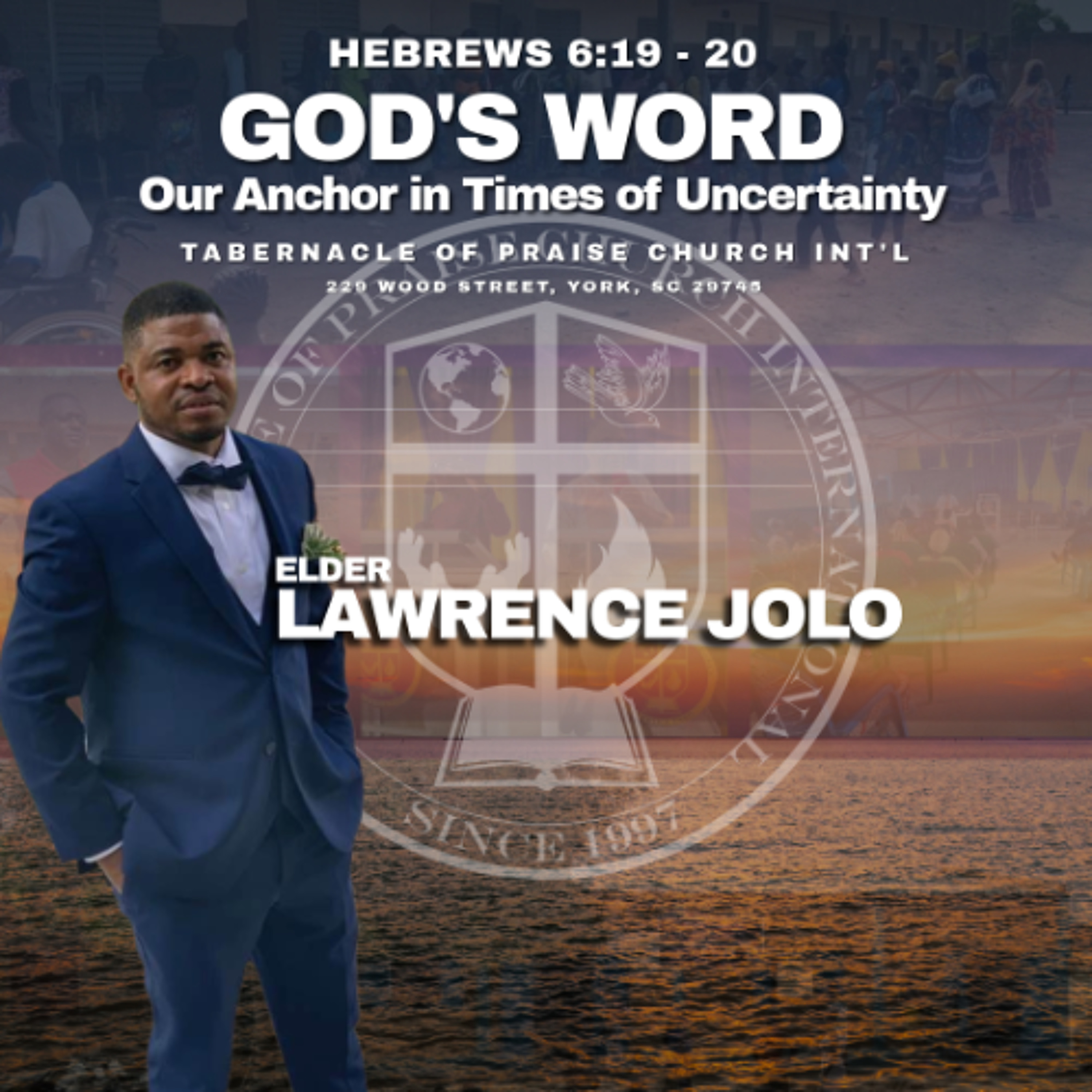 Thank you for joining us for morning worship! Today, Elder Lawrence Jolo, ministers to us from the topic “God's Word: Our Anchor in Times of Uncertainty."