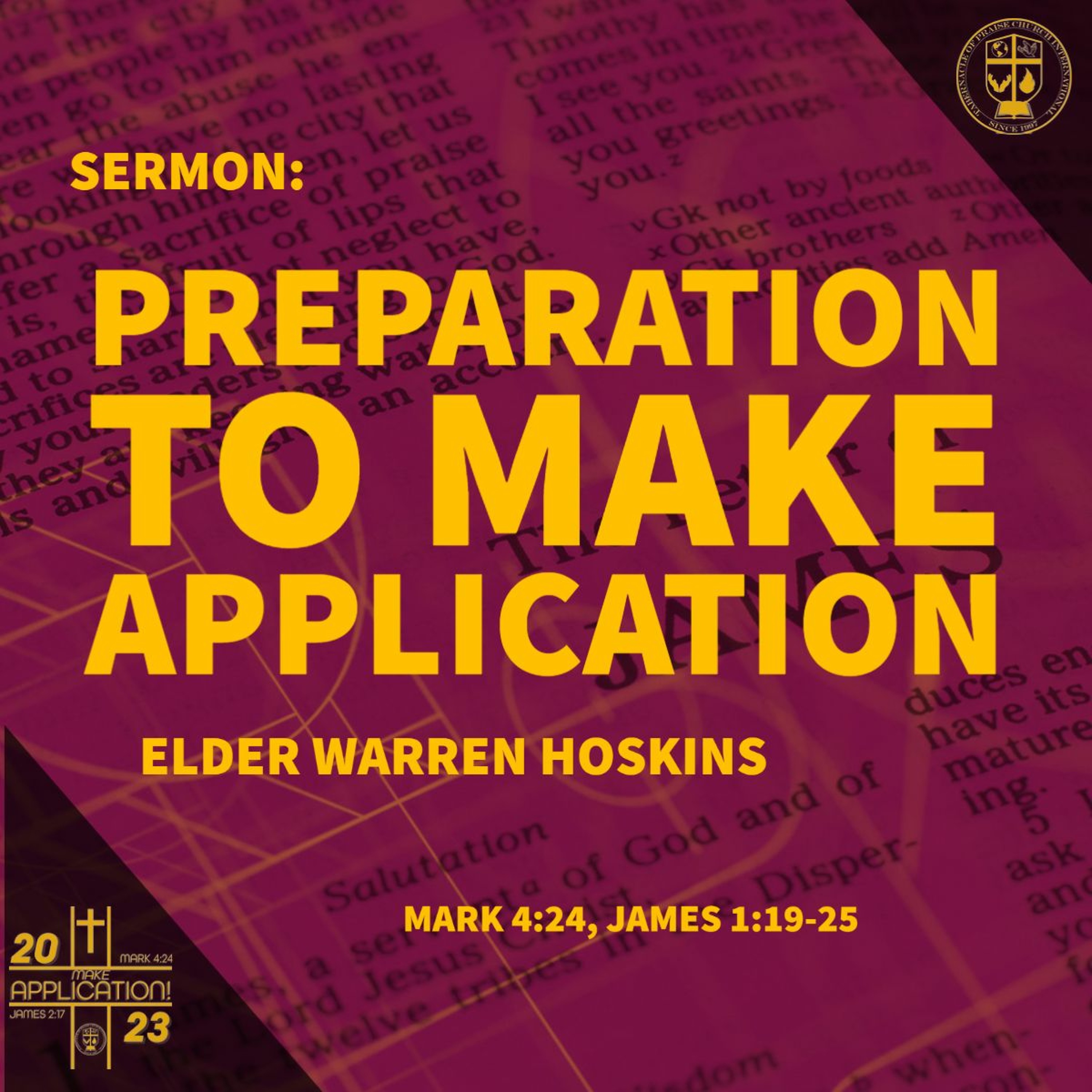 Elder Warren Hoskins brings a Word from the Lord - Sermon: "Preparation to Make Application" Scripture: Mark 4:24, James 1:19-25