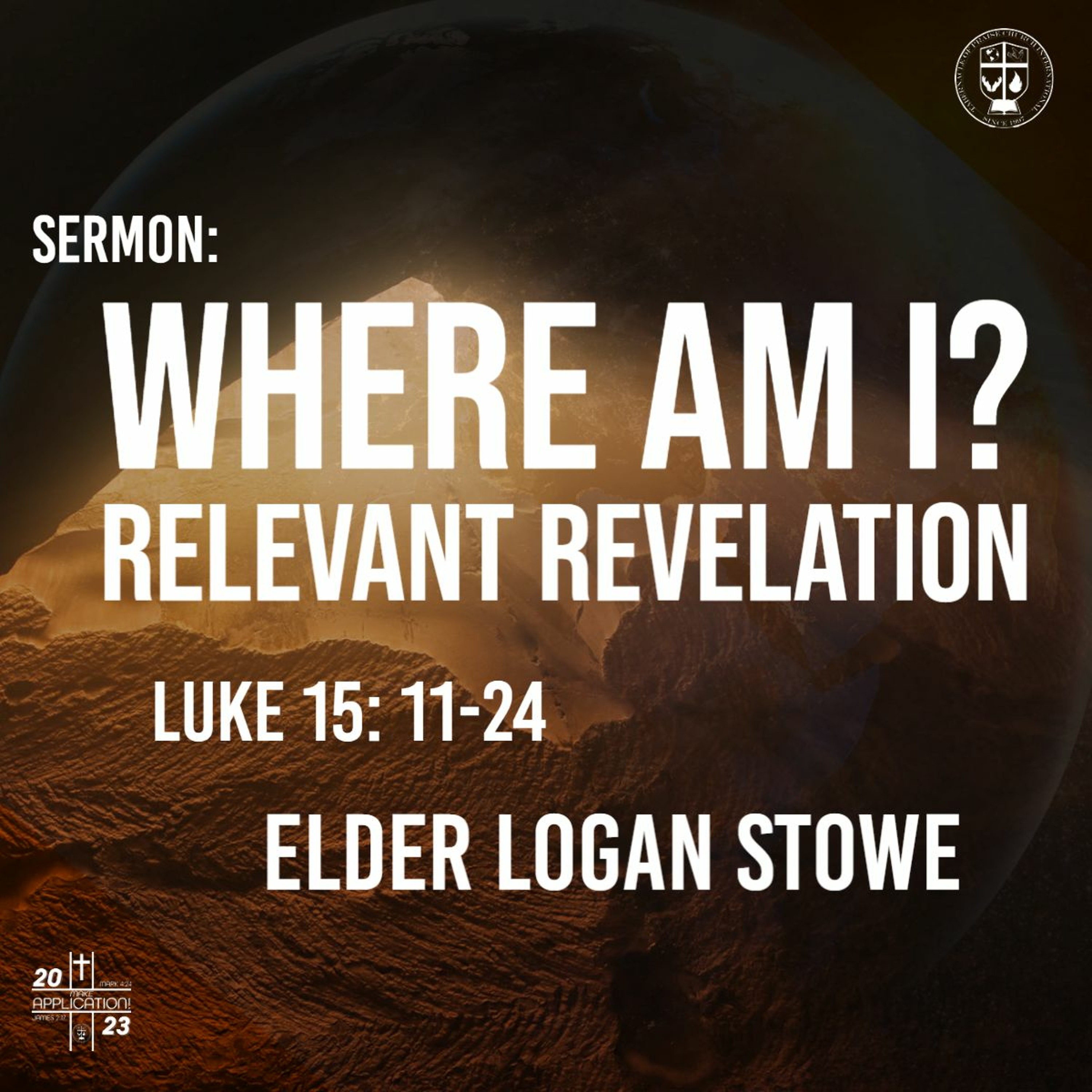 Welcome to Sunday morning worship! Join us as Elder Logan Stowe ministers to us from the topic, “Where Am I? Relevant Revelation.”