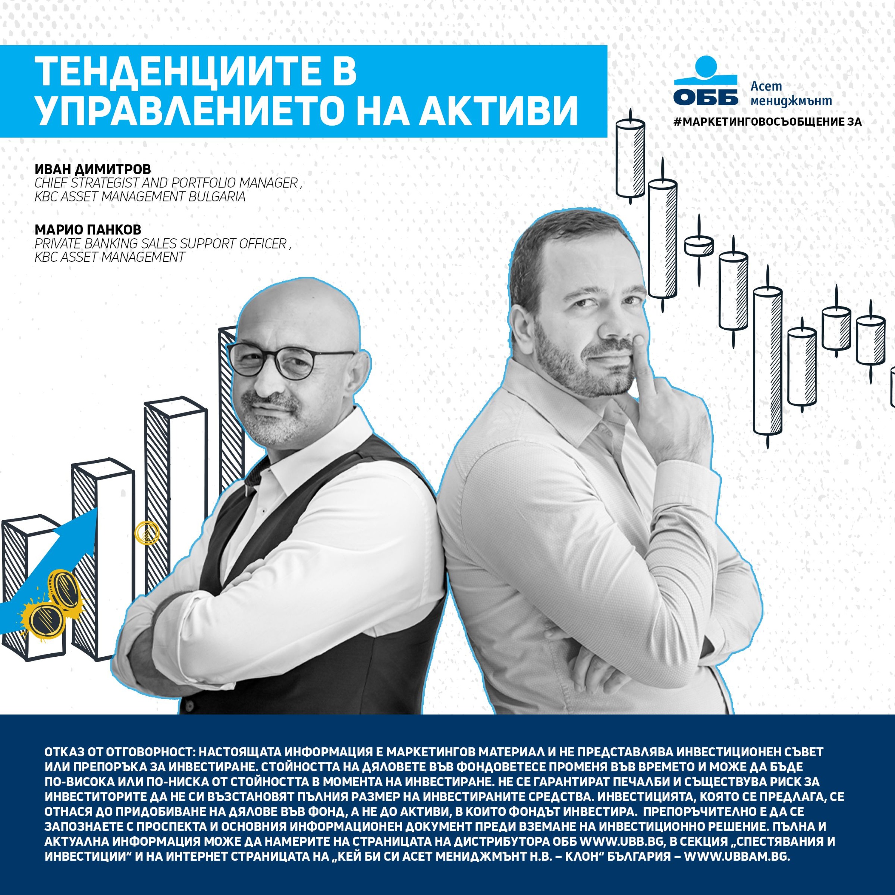 Отказ от отговорност: Настоящата информация е маркетингов материал и не представлява инвестиционен съвет или препоръка за инвестиране. Стойността на дяловете във фондовете се променя във времето и може да бъде по-висока или по-ниска от стойността в момента на инвестиране. Не се гарантират печалби и съществува риск за инвеститорите да не си възстановят пълния размер на инвестираните средства. Инвестицията, която се предлага, се отнася до придобиване на дялове във фонд, а не до активи, в които фондът инвестира. Препоръчително е да се запознаете с Проспекта и Основния информационен документ преди вземане на инвестиционно решение. Пълна и актуална информация може да намерите на страницата на дистрибутора ОББ www.ubb.bg, в секция „Спестявания и инвестиции“ и на интернет страницата на „Кей Би Си Асет Мениджмънт Н.В. – КЛОН“ България – www.ubbam.bg.