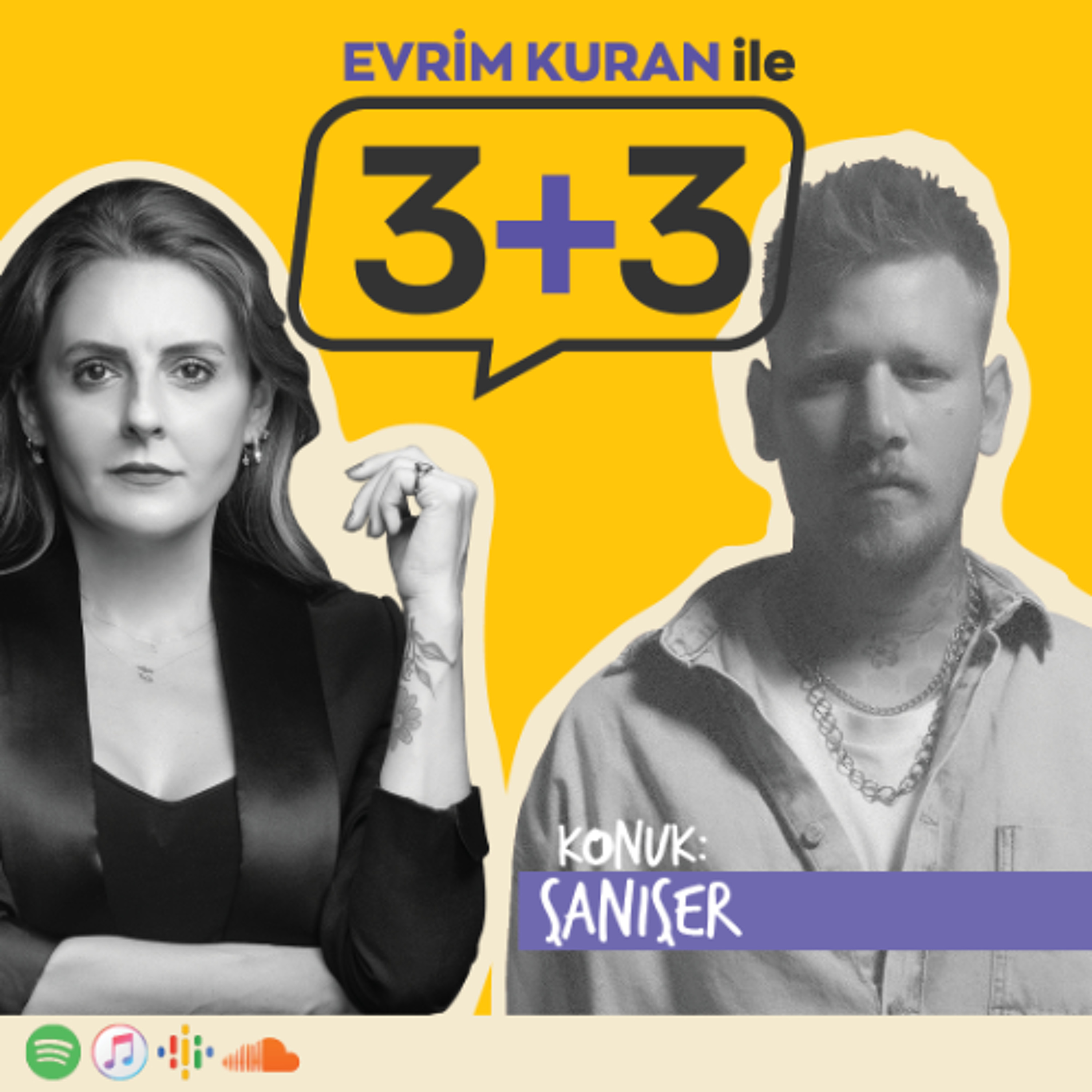 3+3’ün 58. bölümünde konuğum rap müzisyeni, söz yazarı Şanışer ya da gerçek adıyla Sarp Palaur.