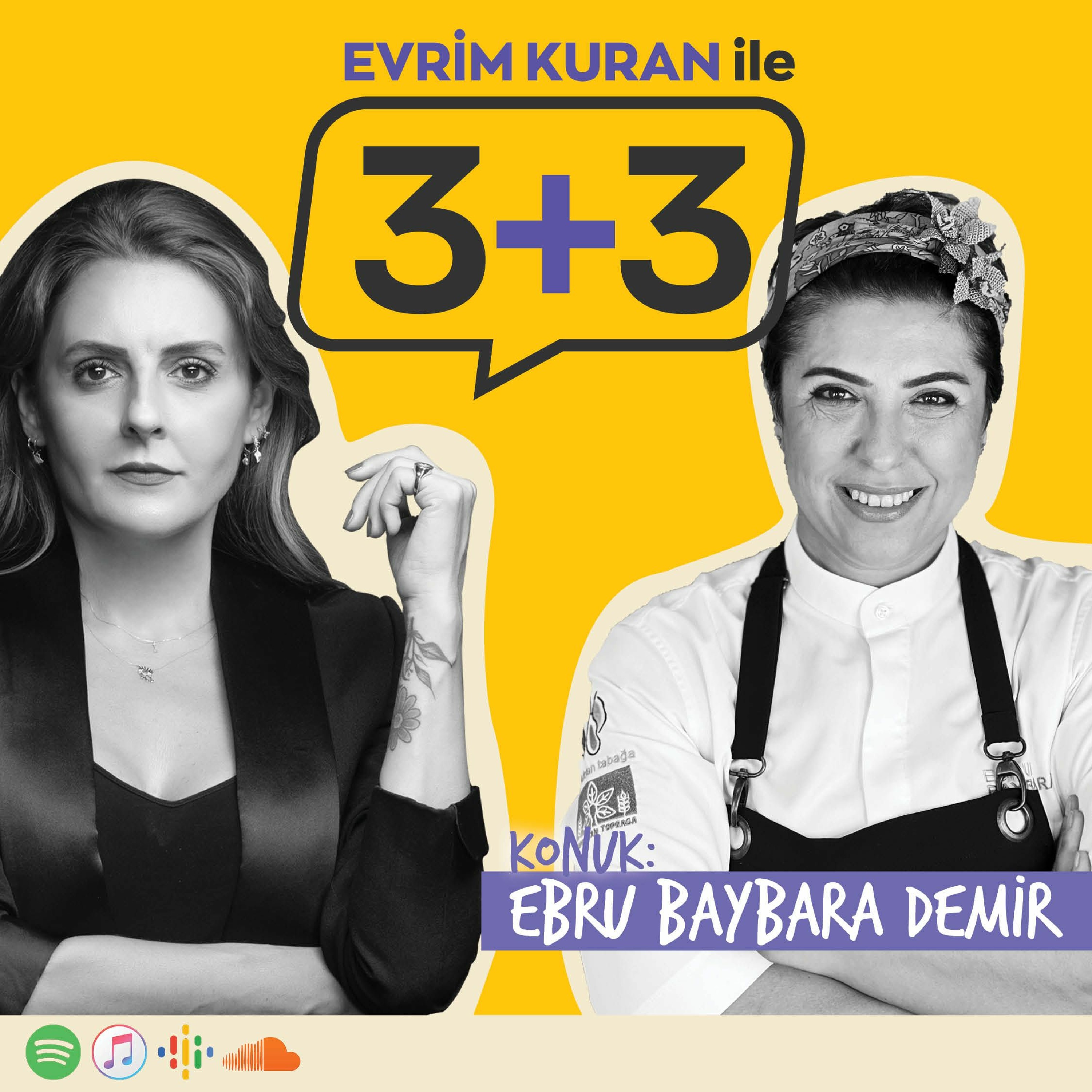 3+3’ün yeni bölümünde konuğum hayatı bir mitolojik karakter gibi yaşayan bir kadın, Sosyal Gastronomi Şefi Ebru Baybara Demir.