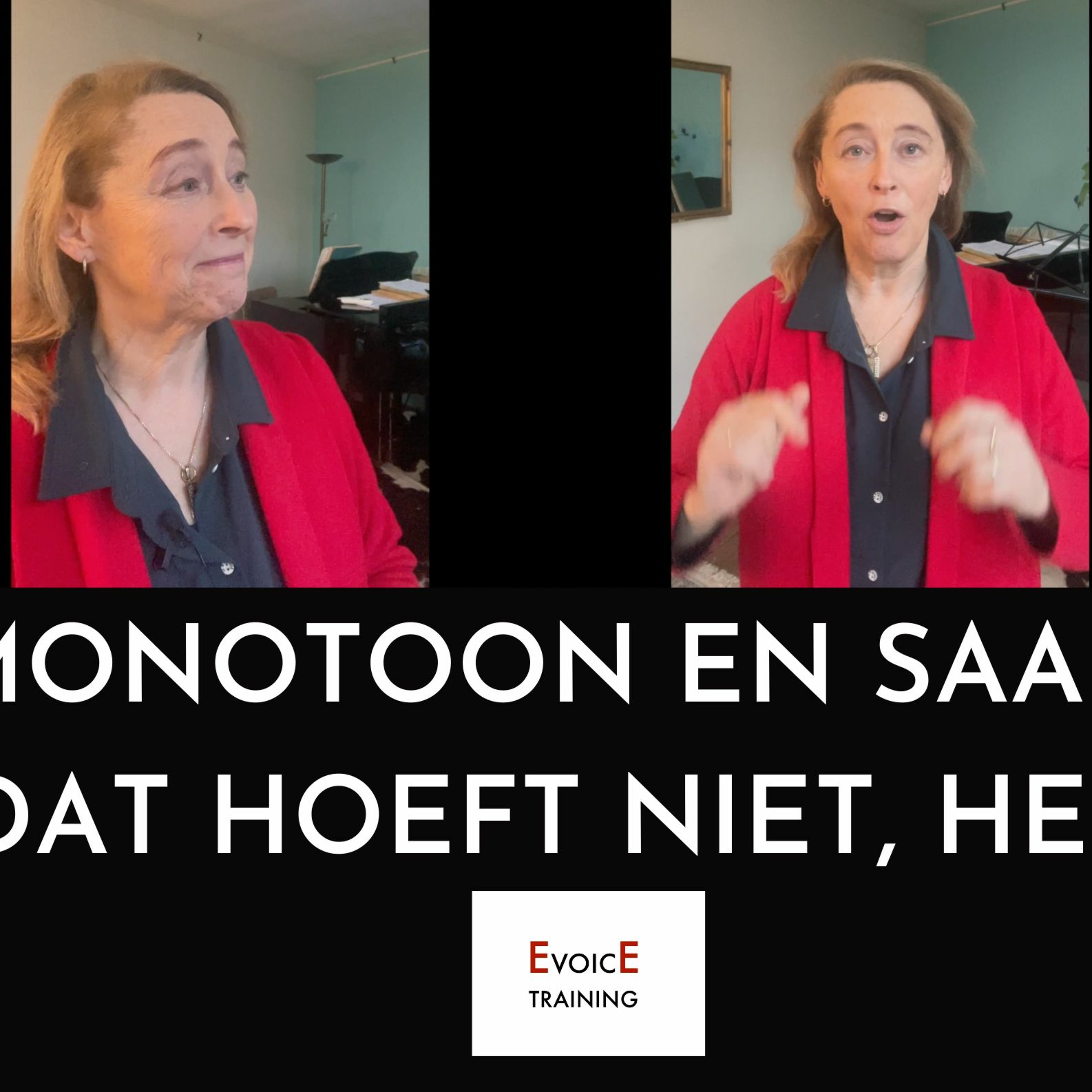Zelfde stem, zelfde tekst, zelfde microfoon. Afwisselend spreek ik monotoon en beweeglijk met hoogte pieken. Ik moest voor dit filmpje het geluid van de monotone stem luider maken en de kleurrijke stem dimmen. Want monotonie maakt vrijwel altijd de klank ook zachter. Vaak zeggen sprekers met veel inhoud en plichtsbesef ‘het gaat niet om mij, het gaat om de inhoud’. Laagte in een stem geeft de inhoud gewicht, dat is waar. Maar wanneer je alleen laagte gebruikt gaat er van alles mis: het klinkt monotoon, saai en gedeprimeerd en gewoon te zacht. Hoe vriendelijk ik ook glimlach, monotoon kom ik niet echt over het voetlicht. Het helpt enorm als je je hoogte pieken groter maakt! Meer in mijn boek ‘Ligt het aan je stem?’, en voor coaching ga je naar www.evoicetraining.nl