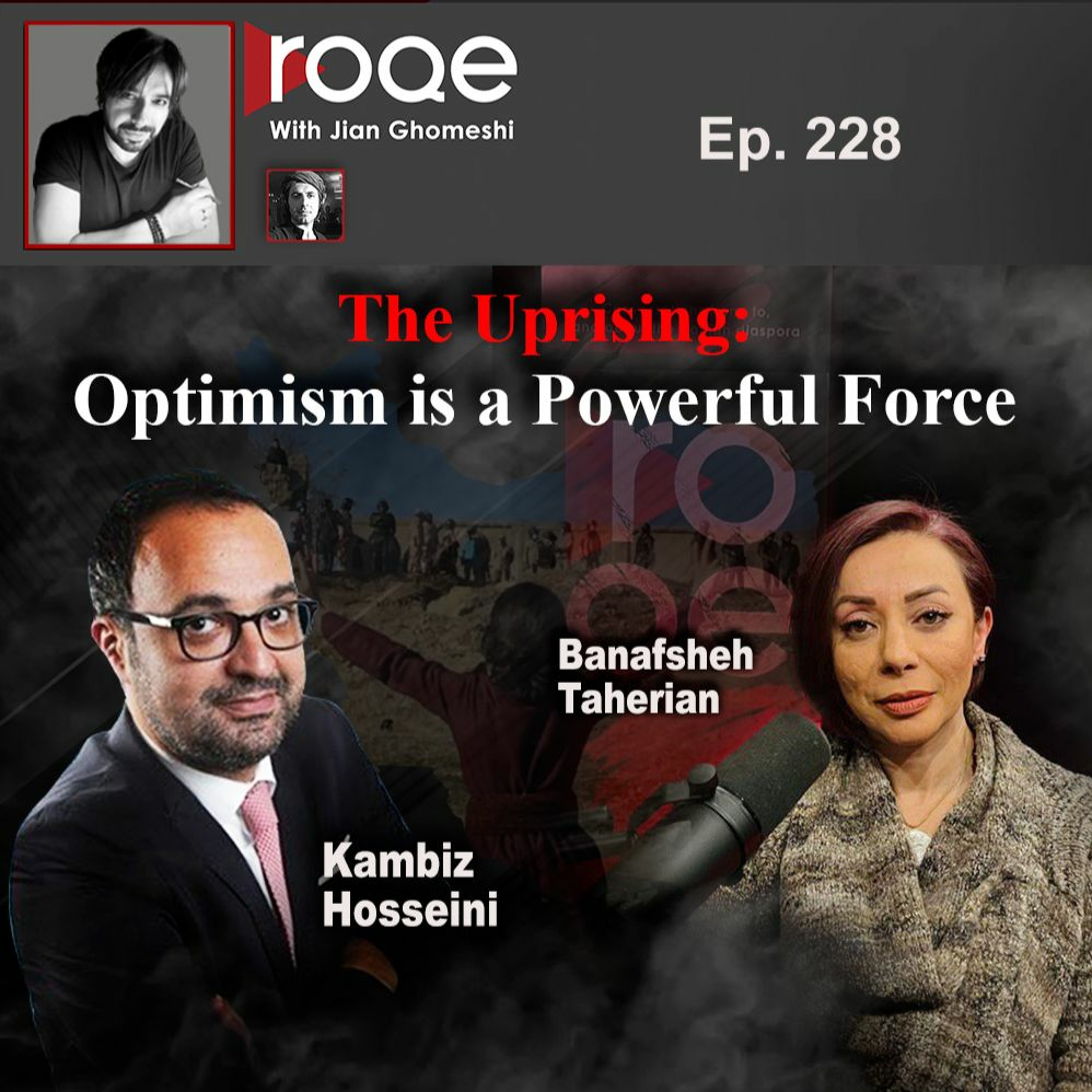 A new edition of Roqe as part of the ongoing Uprising series, and the first program of 2023. Jian kicks off with an opening essay about revolutionaries being optimists and the importance of embracing hope, and then welcomes two feature guests to take stock of the recent months in Iran and discuss expectations and aspirations for the coming year: Broadcaster Kambiz Hosseini, host of the popular show show, “Paradox,” on Radio Farda, joins from his home studio with his unique and candid style, and writer and performer Banafsheh Taherian, host of the “Chai with Banafsheh” podcast, joins Jian in the Roqe Studio.
