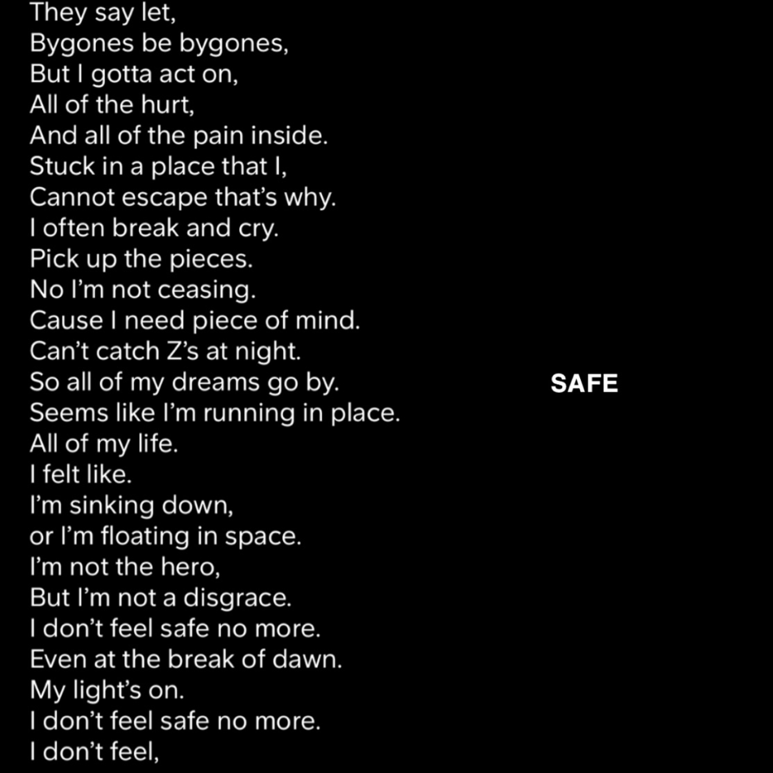 I don’t feel safe no more.