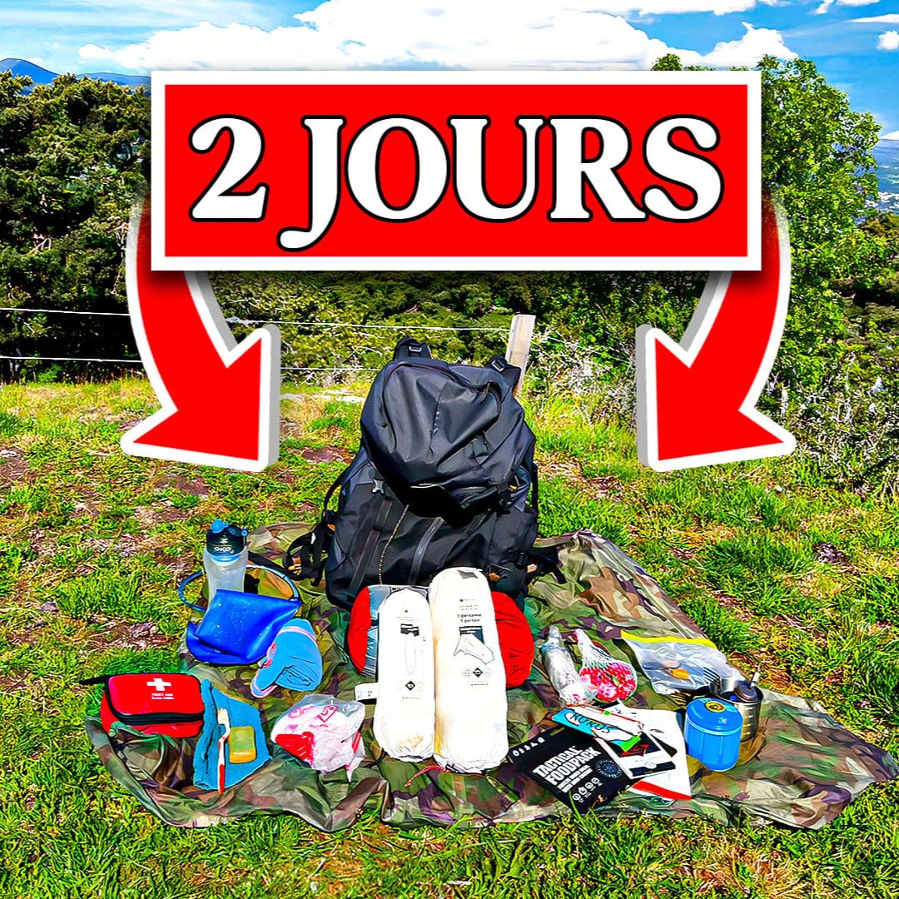 Contenu de mon sac pour 2 - 3 jours de Rando & Bivouac : chaussures, vĂȘtements, couchage, tente, duvet, matelas, kit cuisine, nourriture, filtre Ă eau...